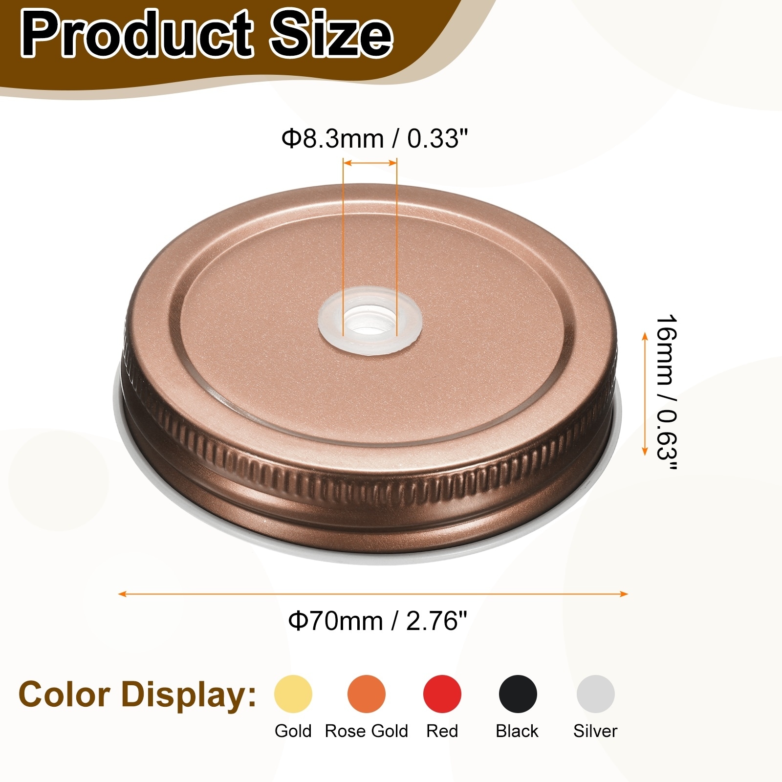 Mason Jar Lids Tinplate Regular Mouth Reusable Mason Canning Covers with Straw Hole for Storage Bottle and Jars - 2.76"