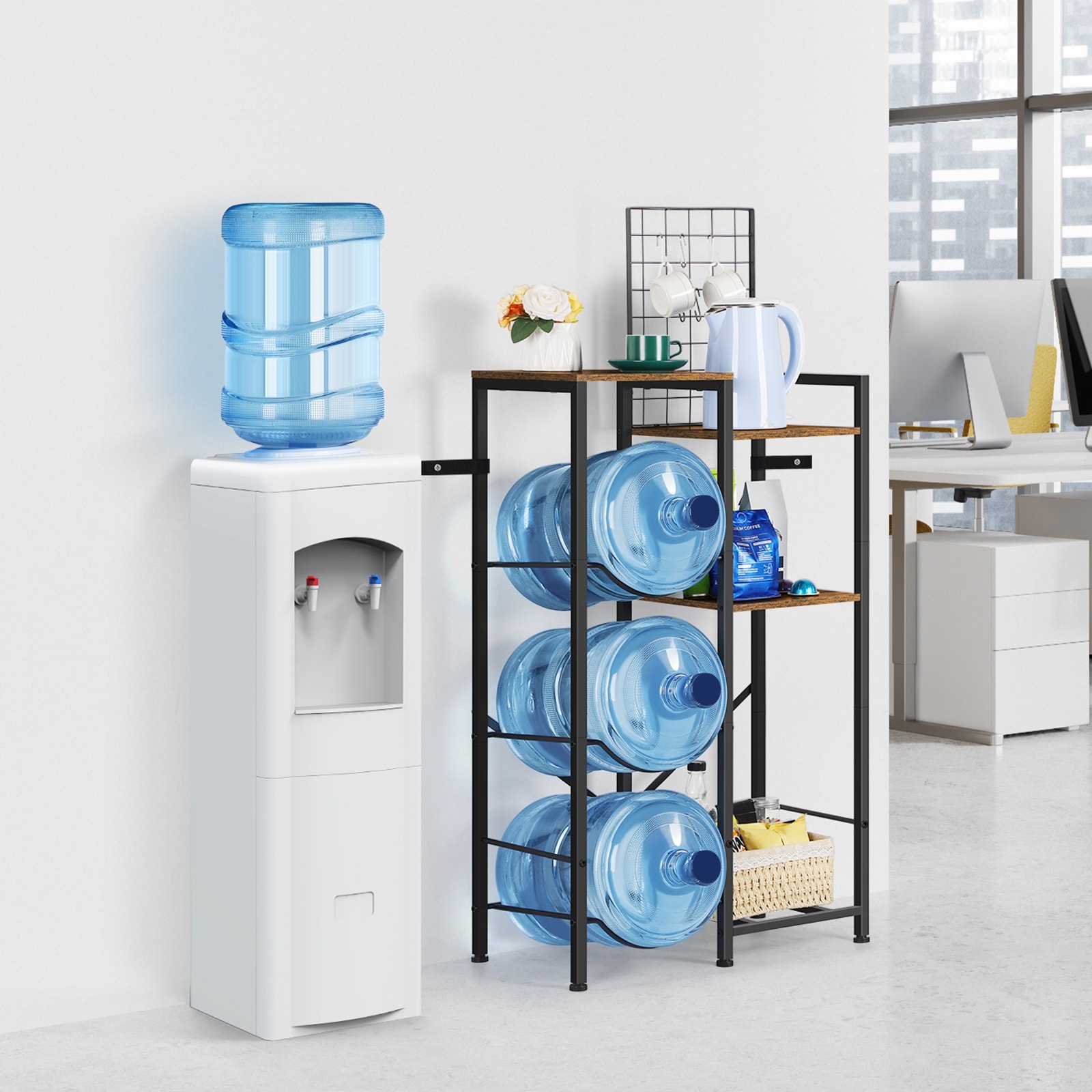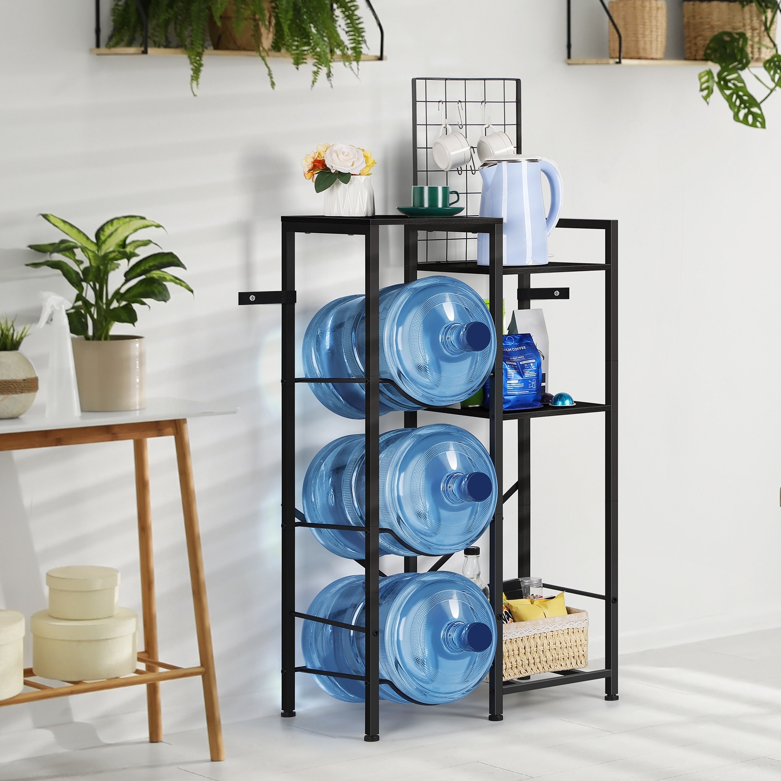 5 Gallon Water Jug Holder, Water Dispenser Stand with Wood Storage Shelves
