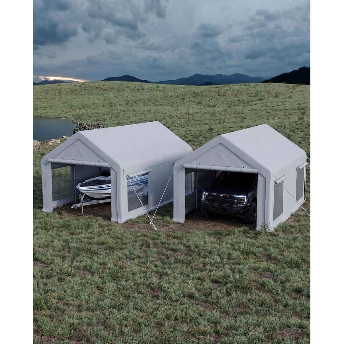 2 Pack 10x20FT Portable Garage Carport, PE Tarp Shelter for Boats Pickup White