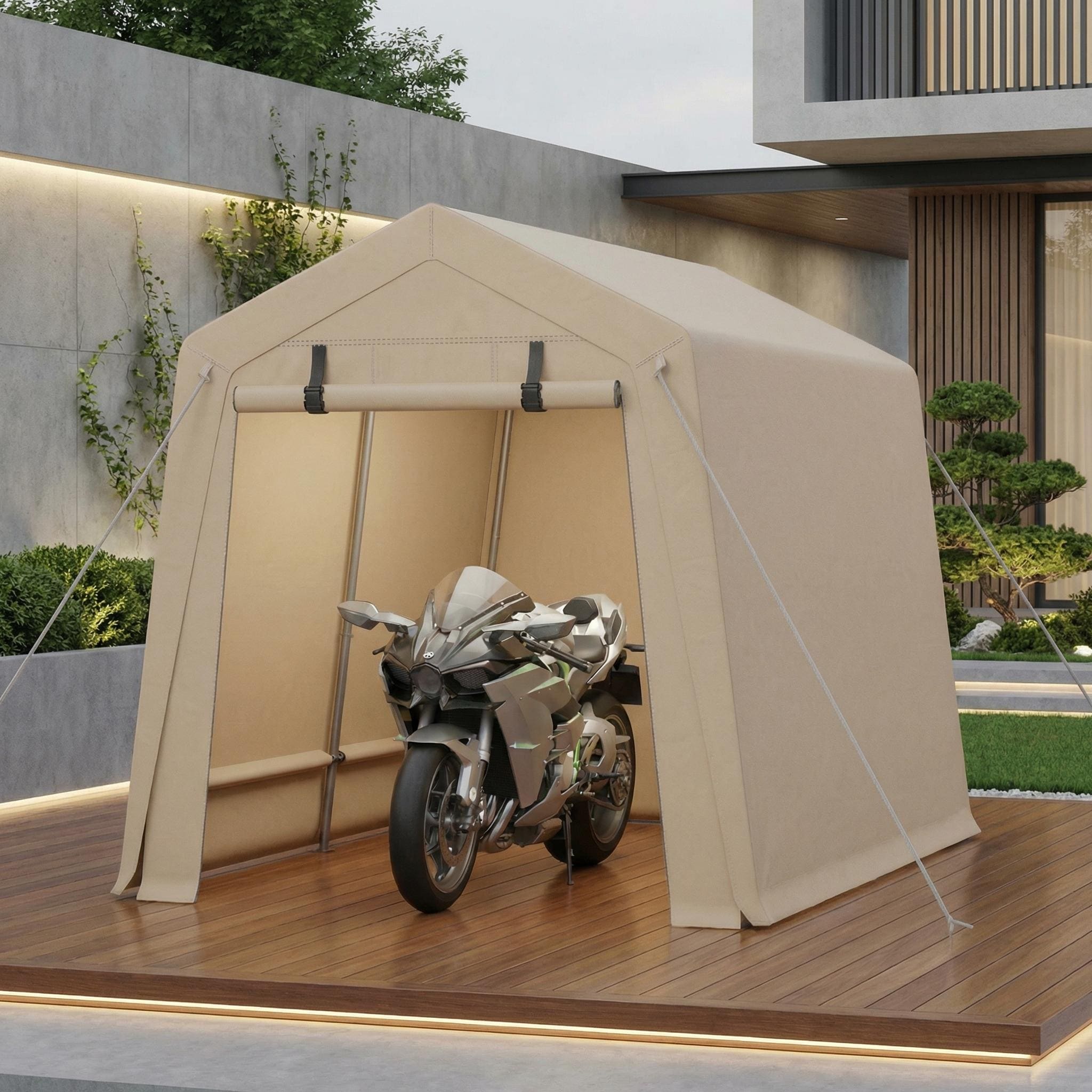 7x10FT Portable Storage Shed, Motorcycle Shelter with Zipper Door Grey