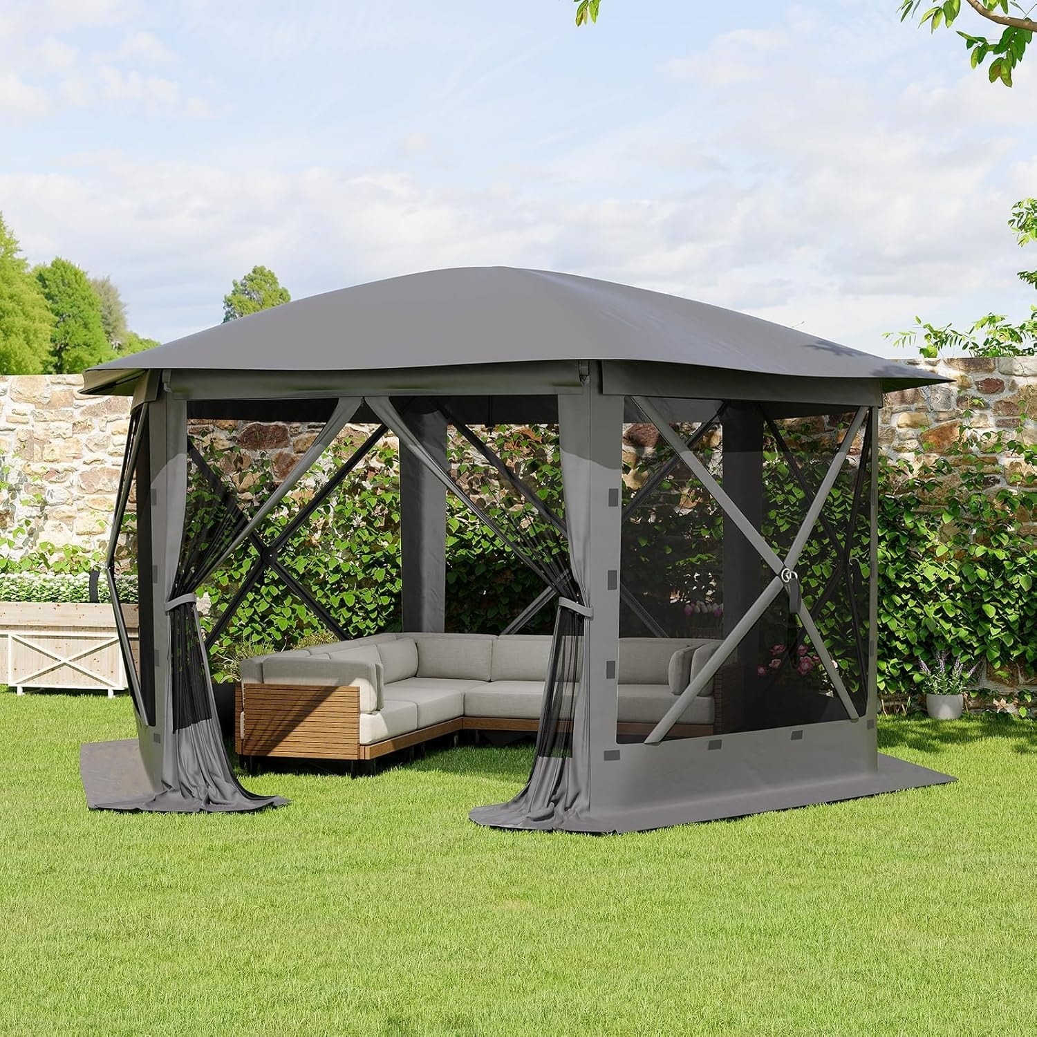 6-Sided Folding Gazebo, Portable Mesh Screen Tent with Wind Panels for Patio
