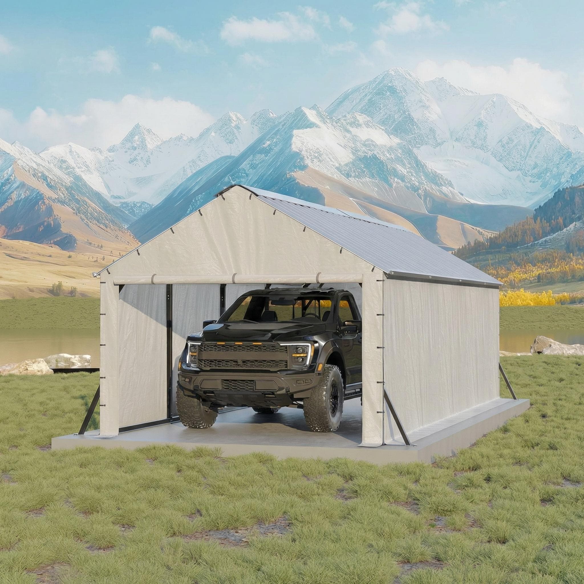 Portable Carport Storage Shed with Roll-Up Zipper Door