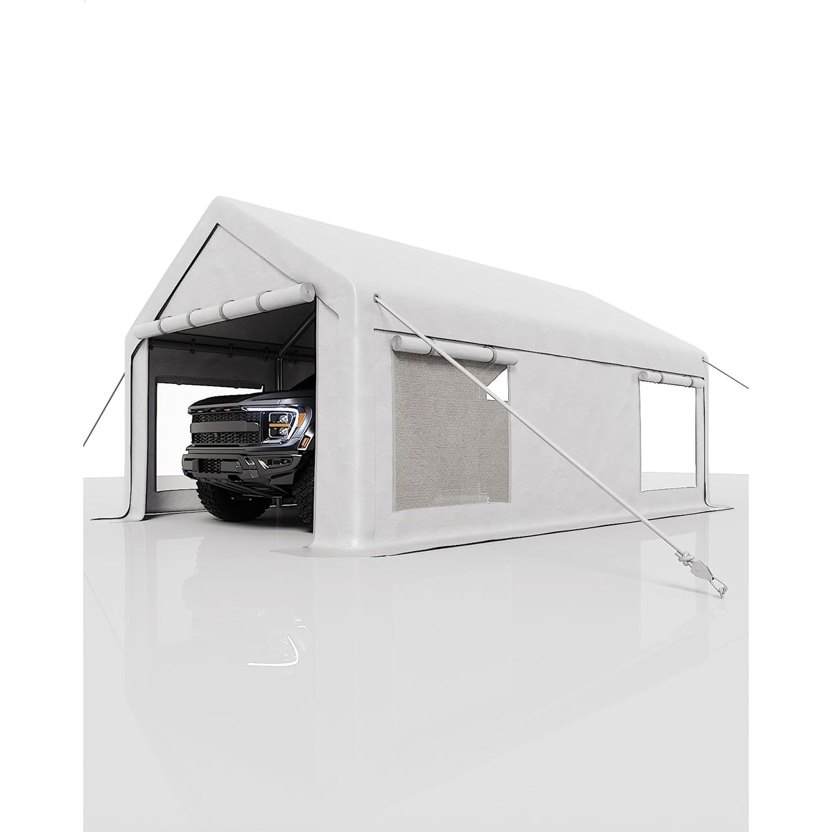 12x20 Ft Carport with Roll-Up Doors and 4 Windows for Bass Boats, Tractors, and SUVs - 12X20 Ft