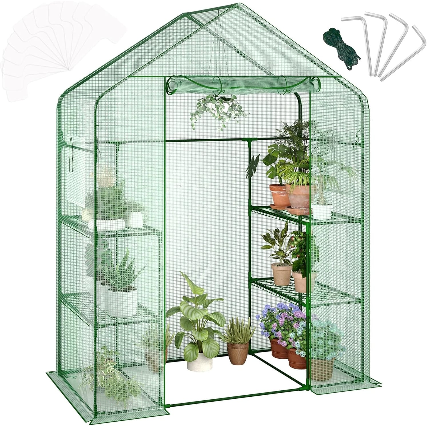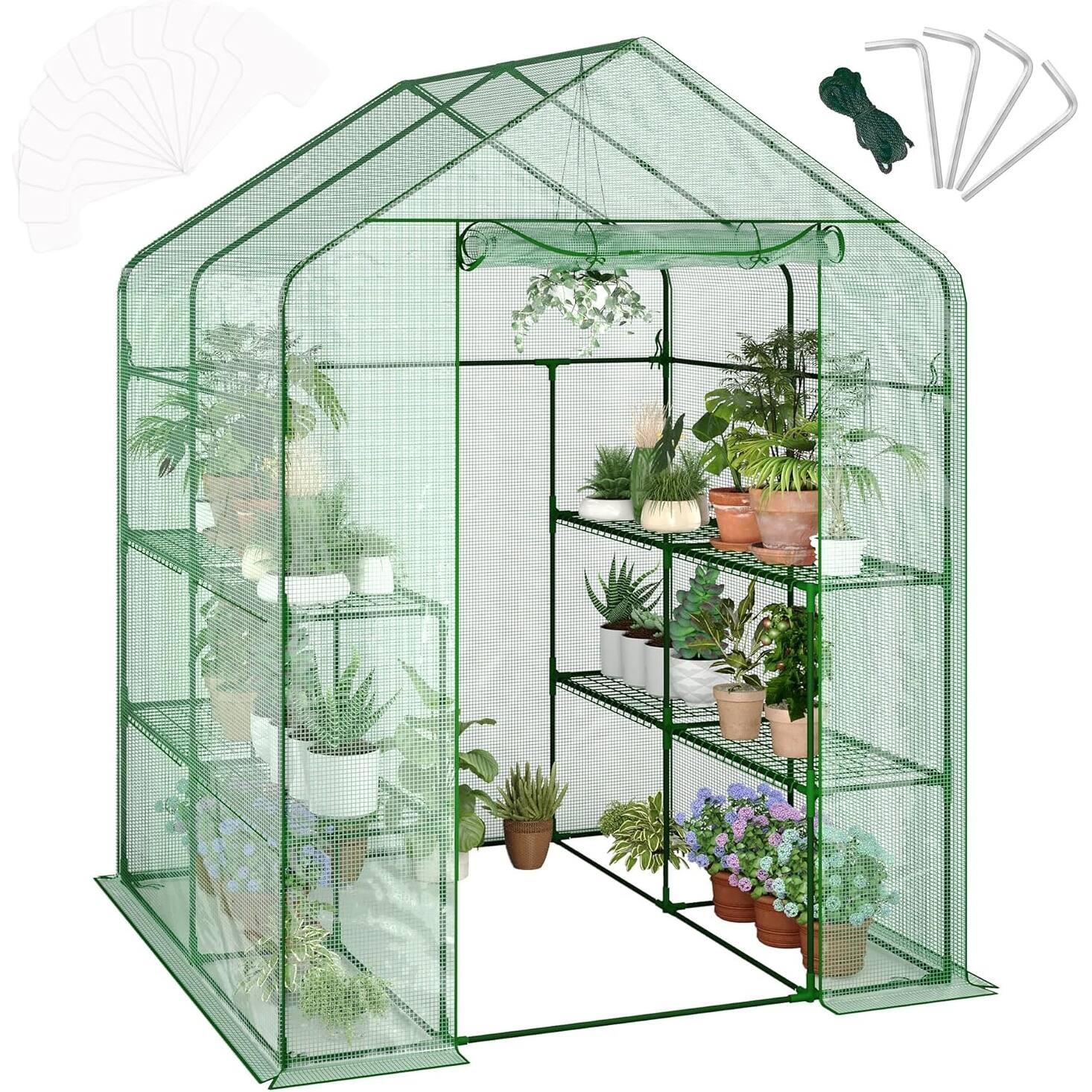 Walk In Greenhouse 57x28x76IN, PE Cover Plant Shelter with 12 Shelves