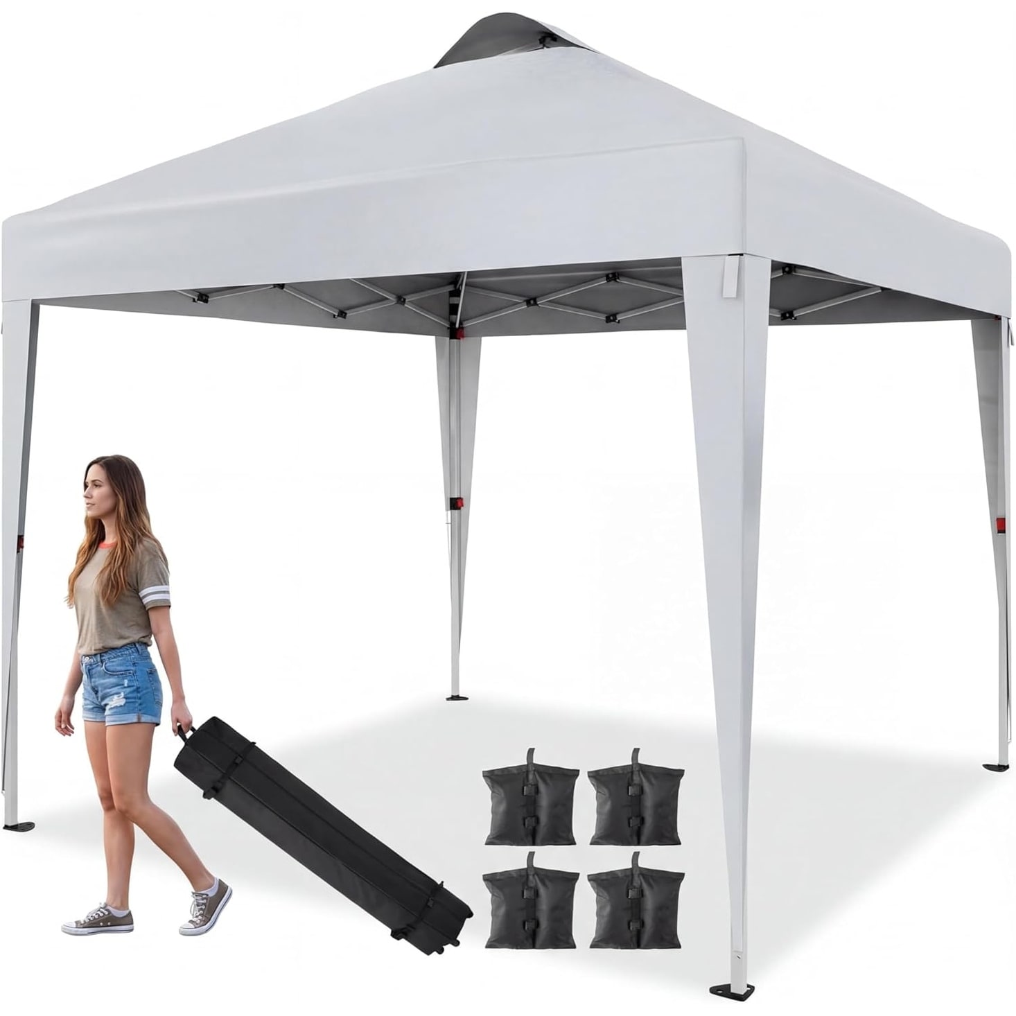 10x10FT Pop Up Canopy Tent, Waterproof UV Shelter with Sandbags & Carry Bag White