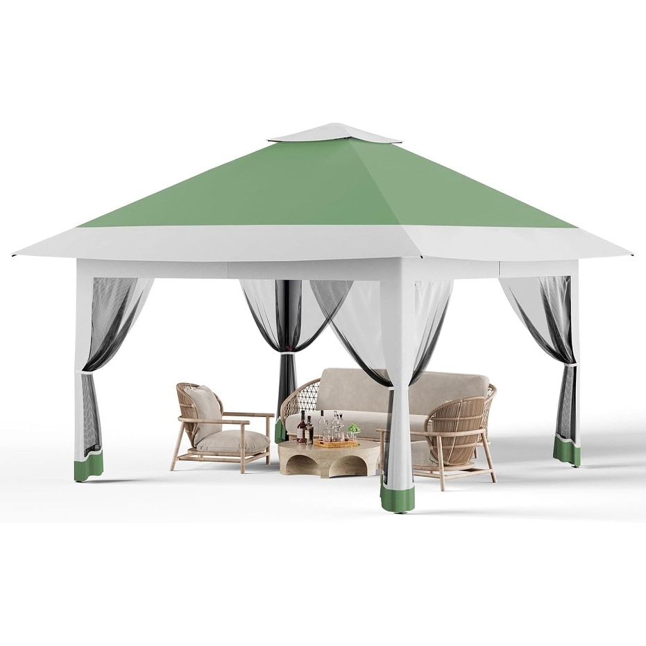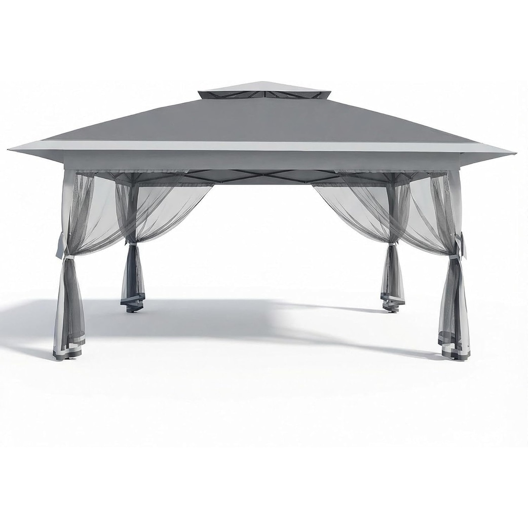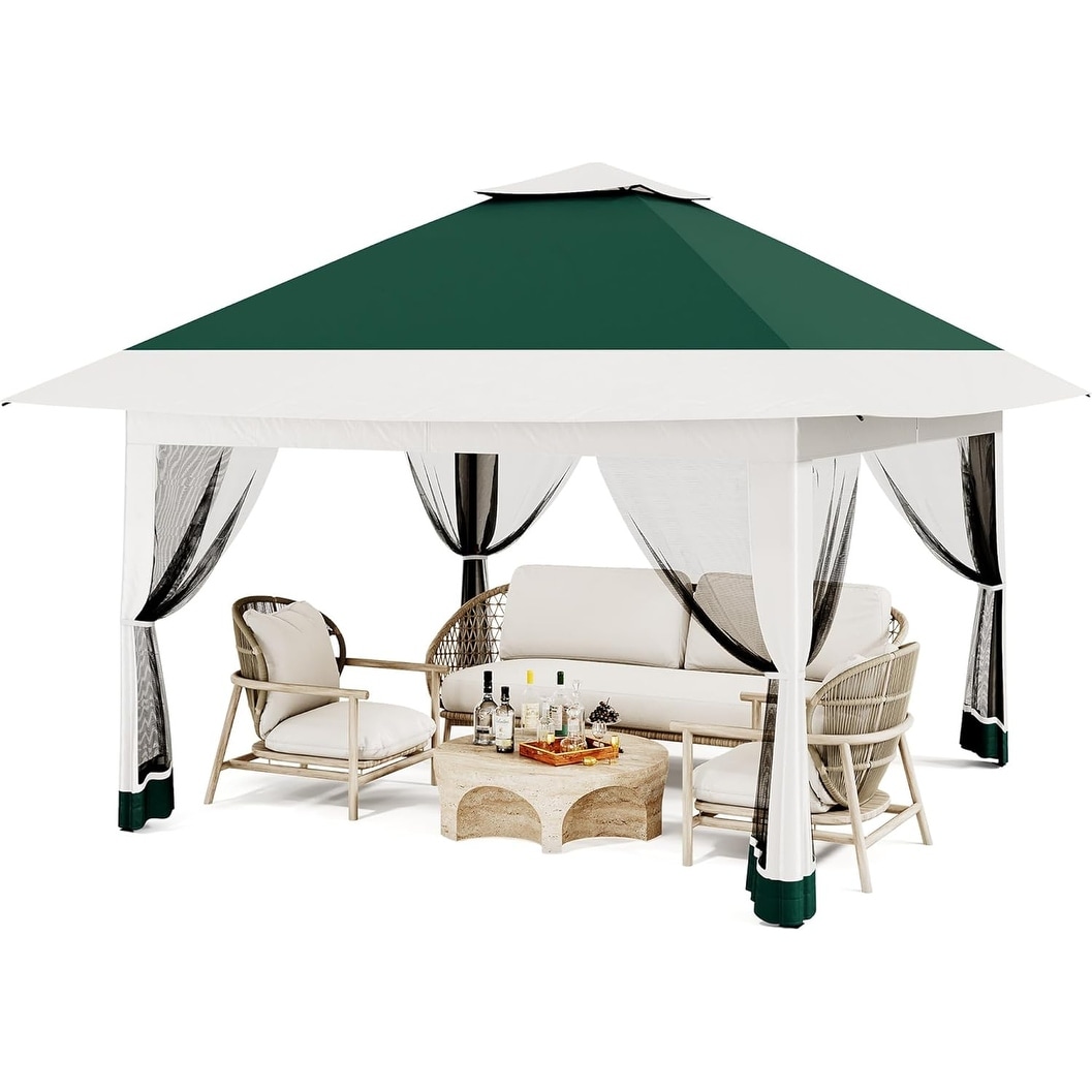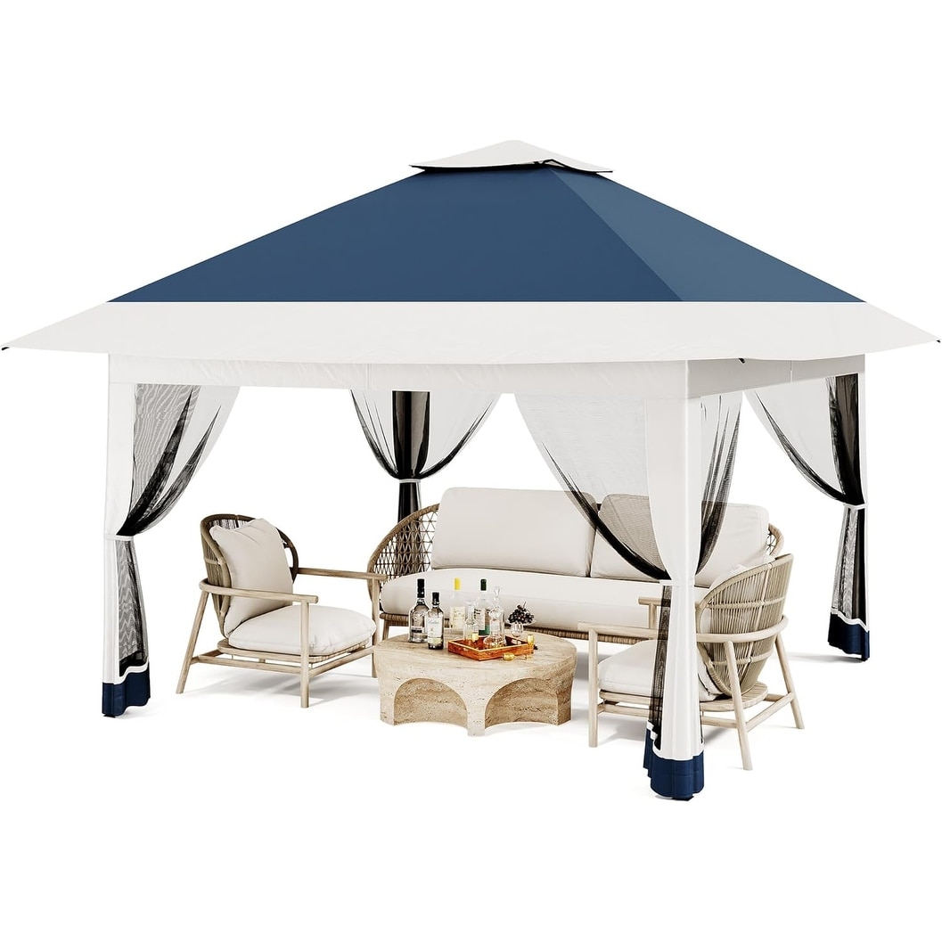 13' x 13' Outdoor Canopy Patio Gazebo Reinforced garden Pop-up Canopy Tentwith Elegant Corner Curtain - 13x13ft