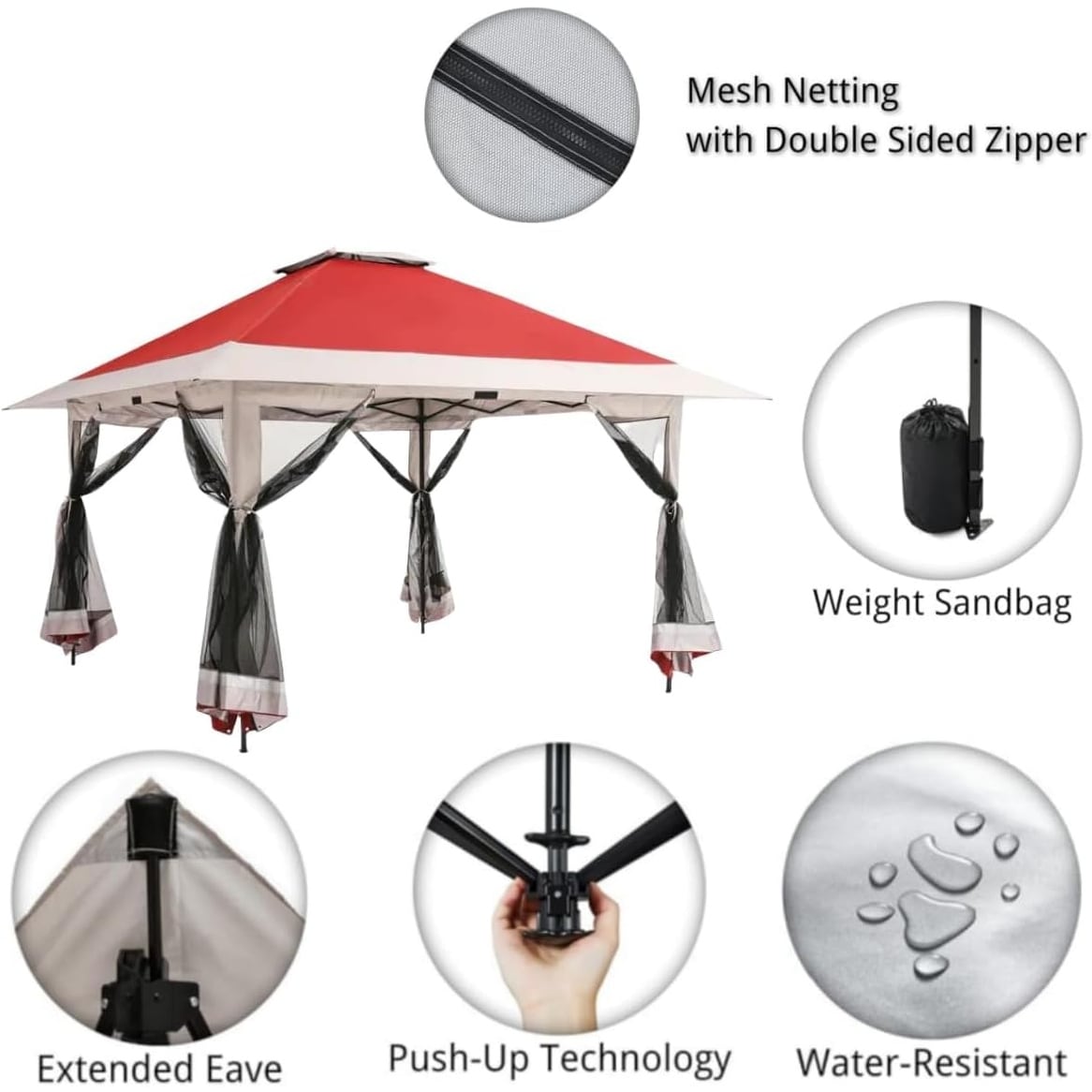 12x12FT Pop Up Canopy Tent, Gazebo with Mosquito Netting & Sandbags