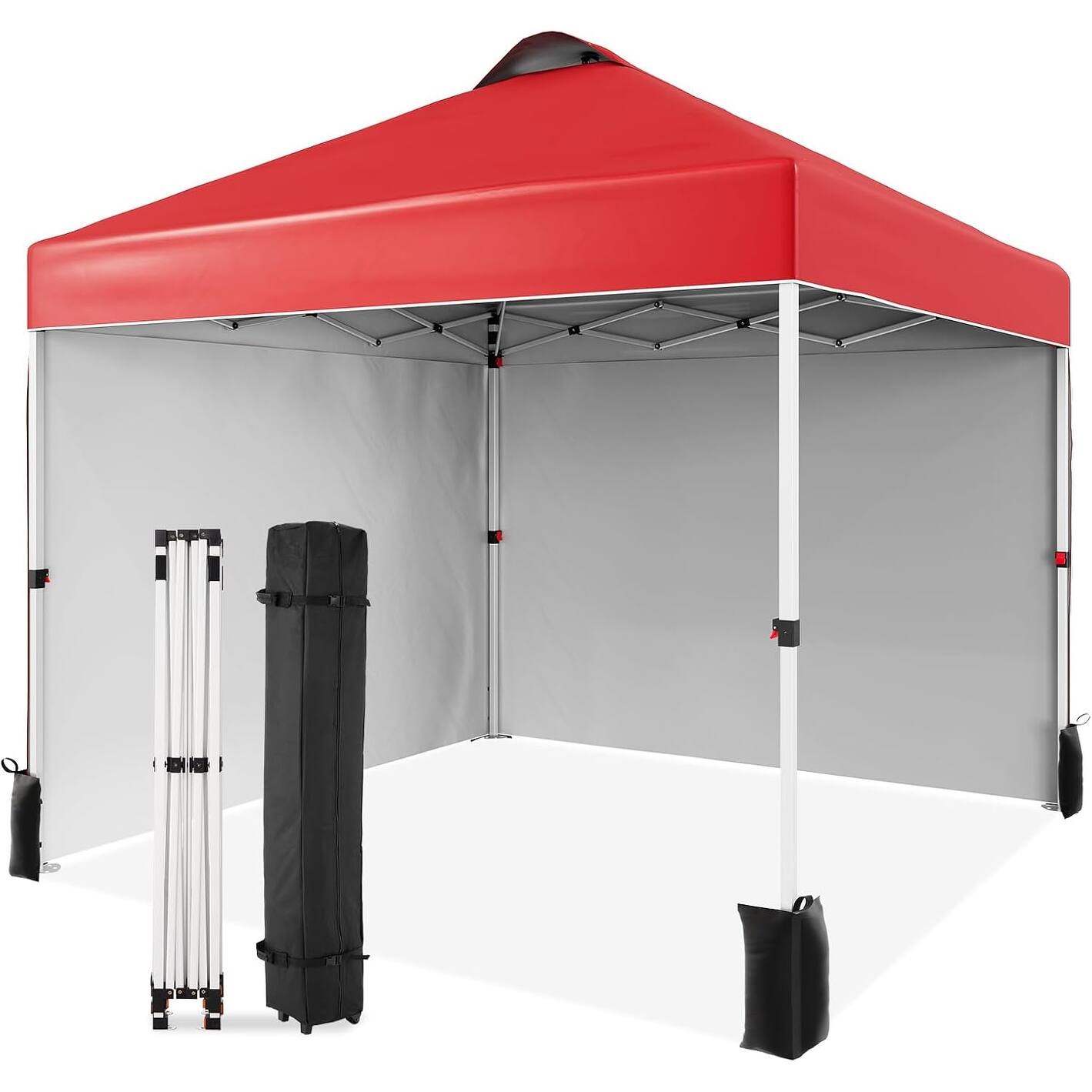 10x10FT Pop Up Canopy Tent, Instant Shelter with 2 Sidewalls & Wheeled Bag White