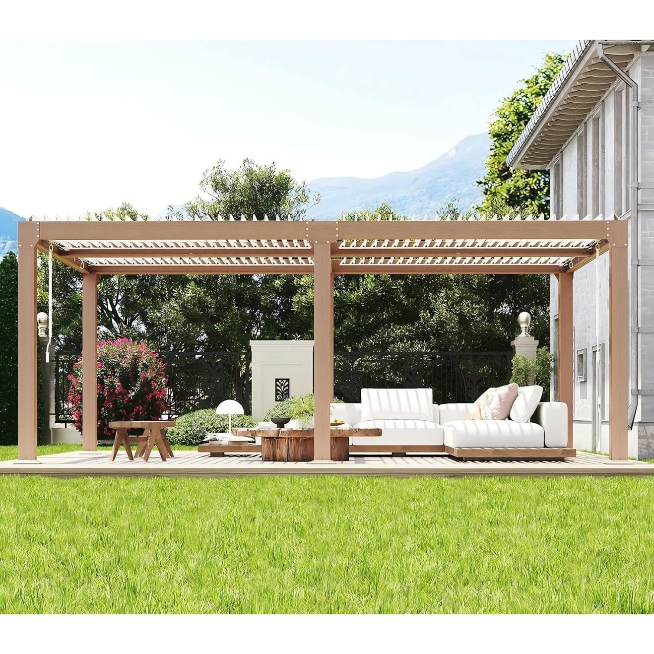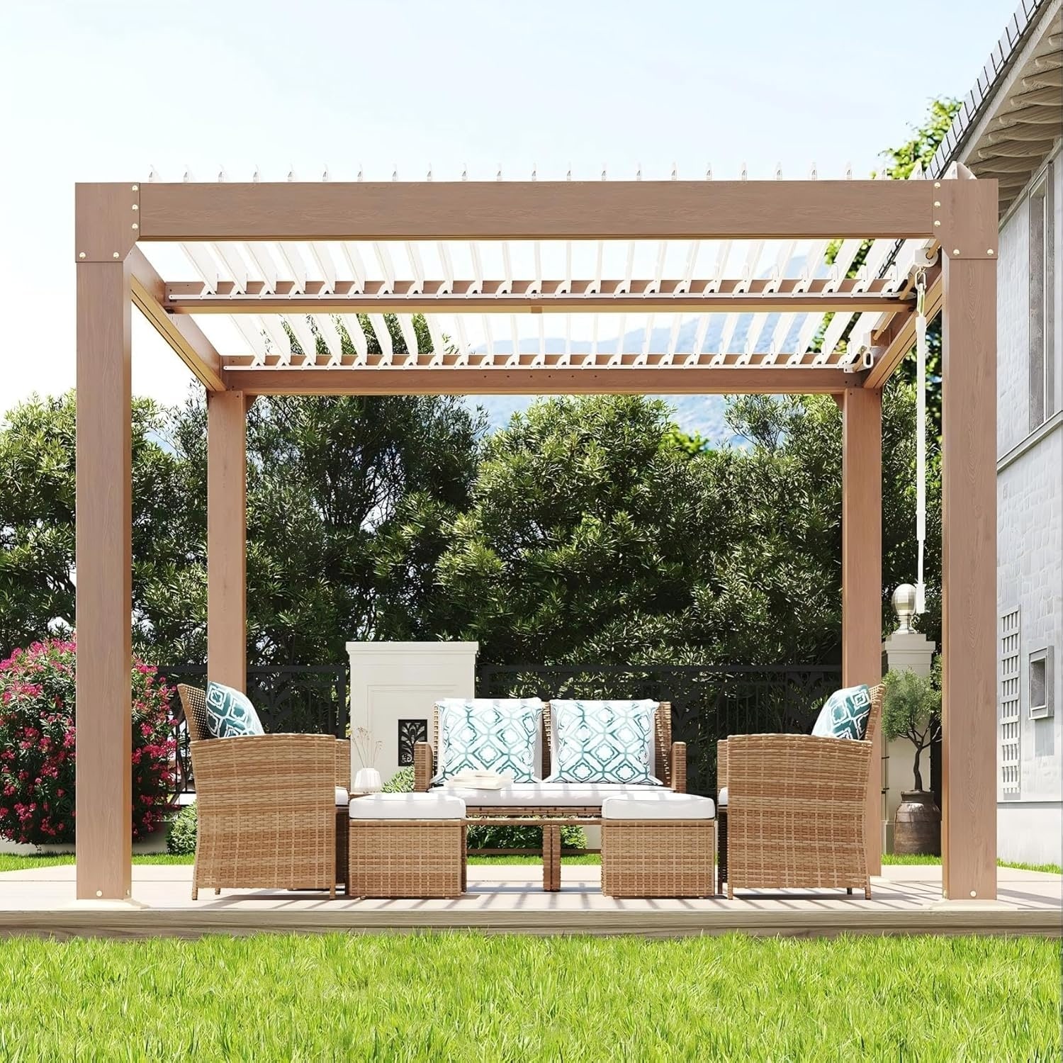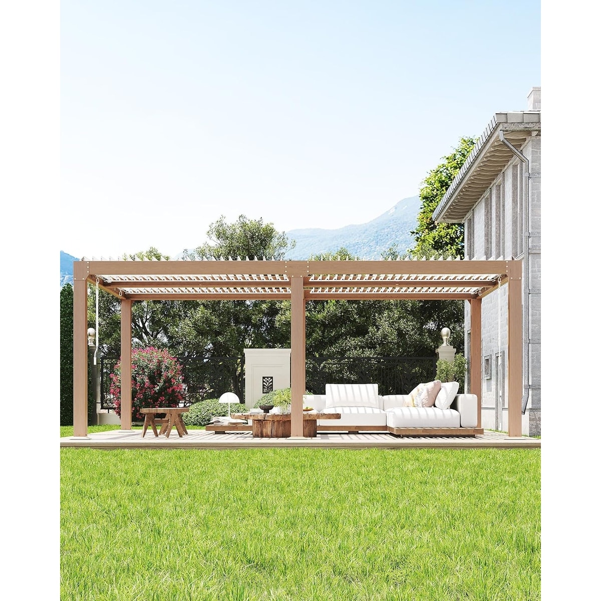 10x10FT Louvered Pergola, Aluminum Hardtop Gazebo with Drainage System for Patio Deck