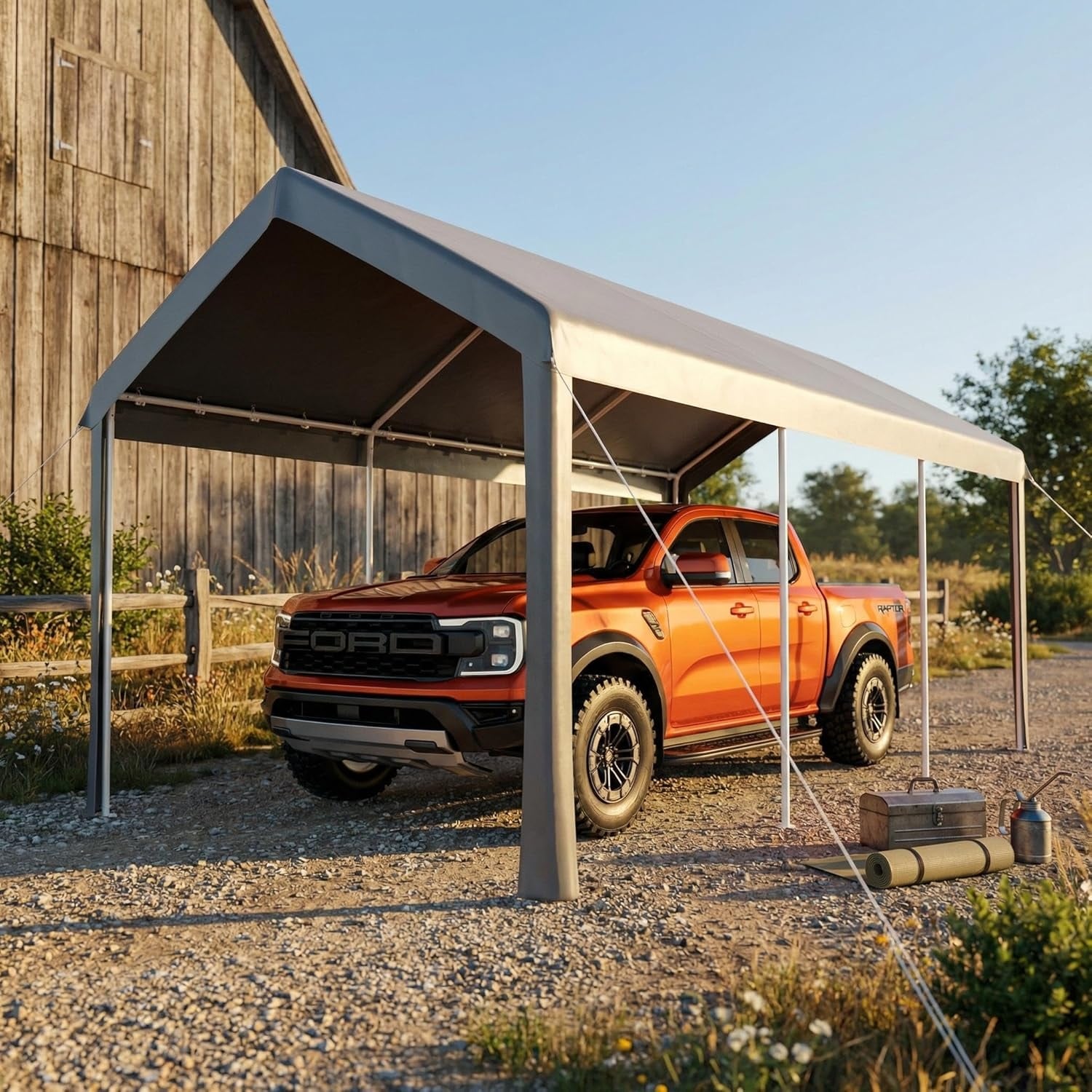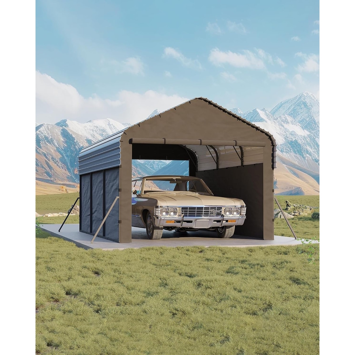 10x20FT Carport Canopy, Waterproof Motorcycle Storage Shelter Grey