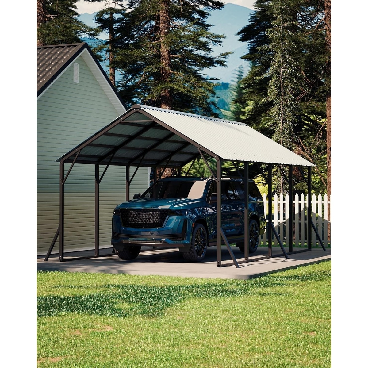 13x21FT Metal Carport, Steel Car Shelter with Vertical Roof for Pickup Truck