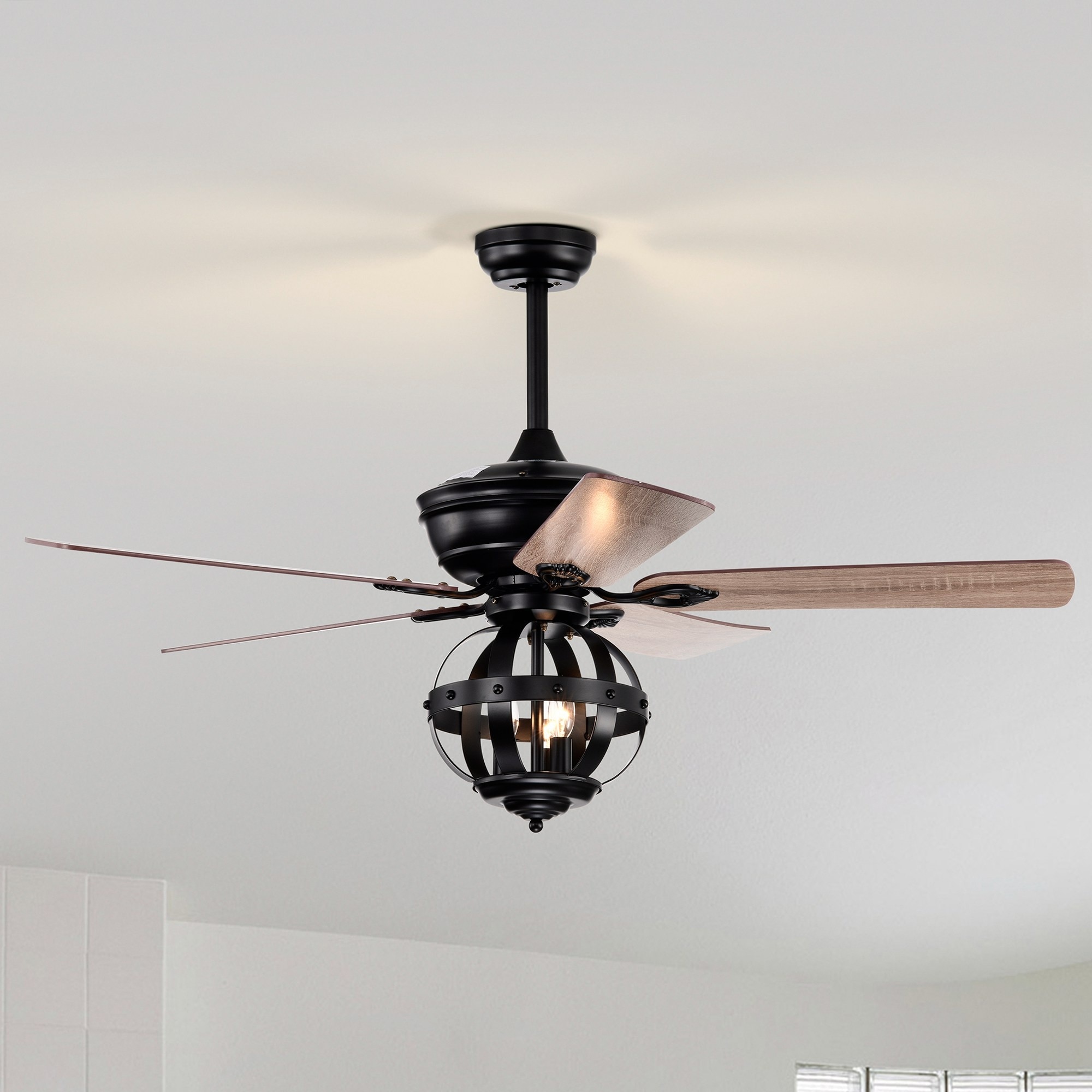52" Indoor Black Caged Ceiling Fan with Light Kit and Remote