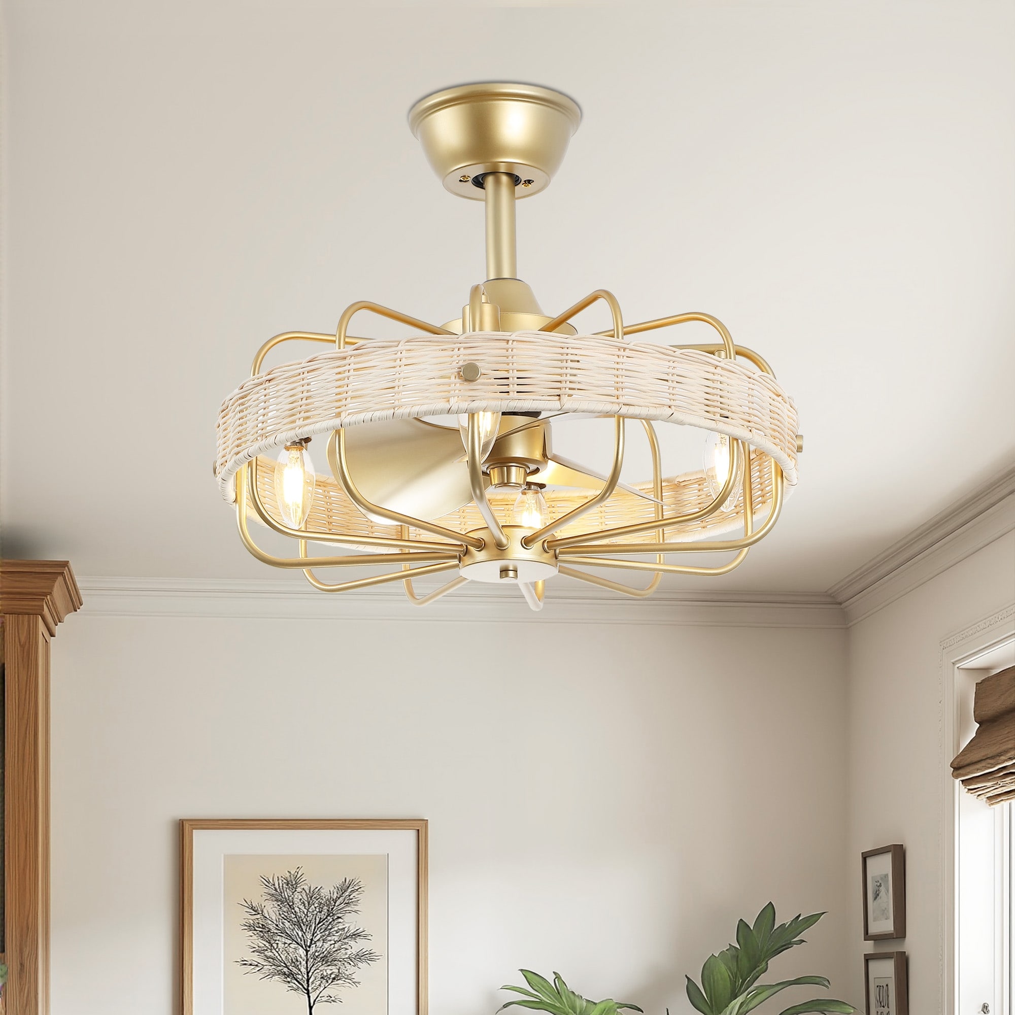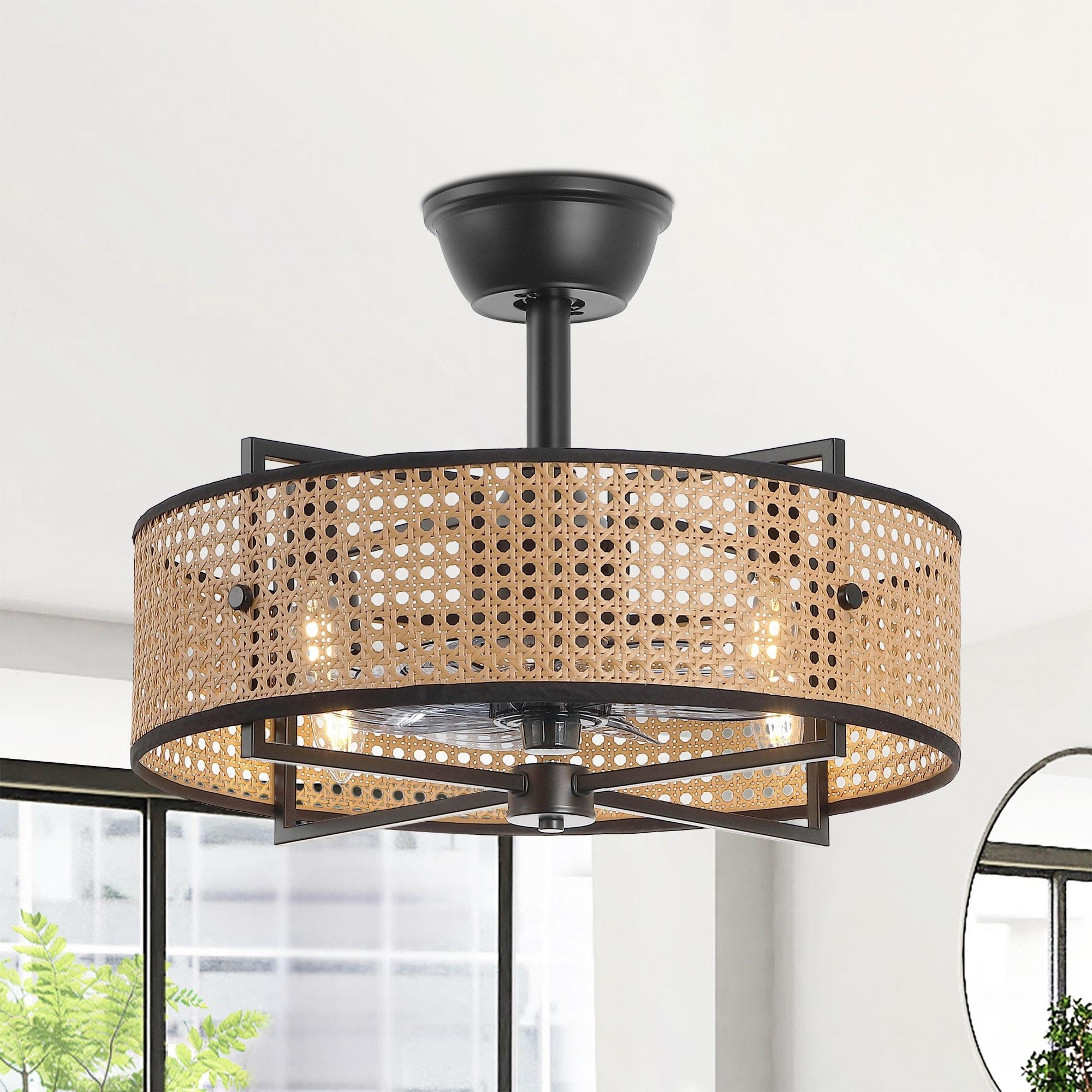 18" Hand-woven Rattan Caged Ceiling Fan with Remote and Lights