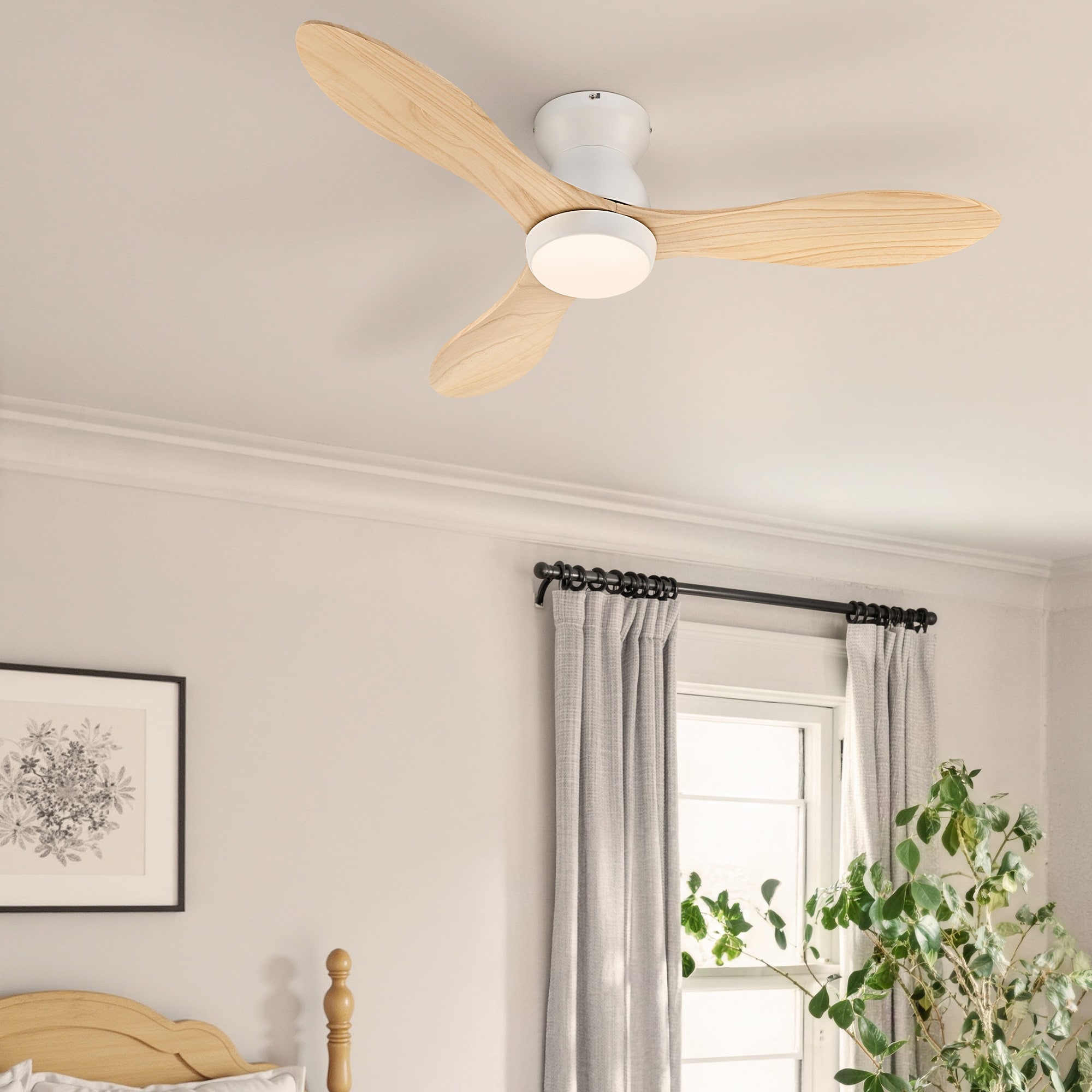 Sofucor 52" Solid Wood/ABS Noiseless Ceiling Fan with Dimmable Light Optional and Remote, 6-Speed Reversible, Smart Optional