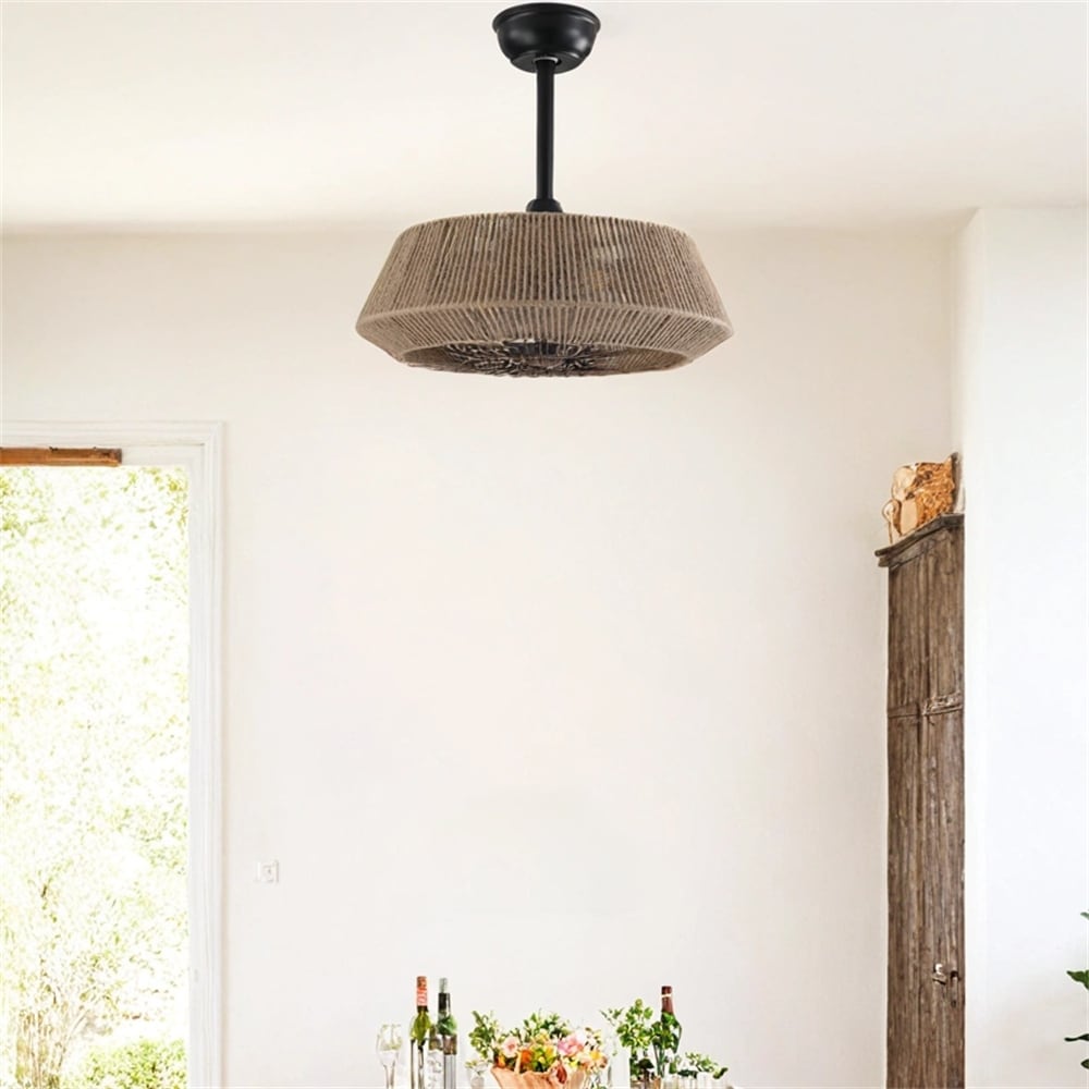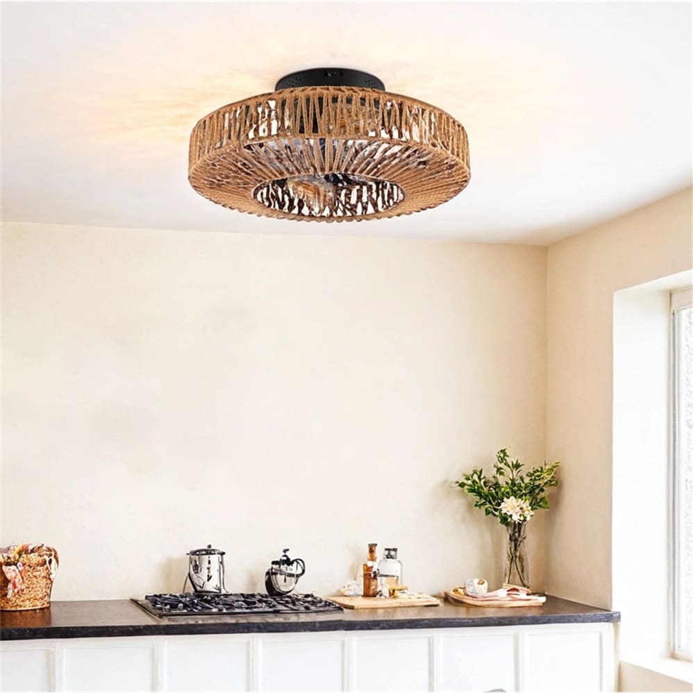 20" Rope Caged Ceiling Fans w/Remote,Flush Mount Ceiling Fan w/Light