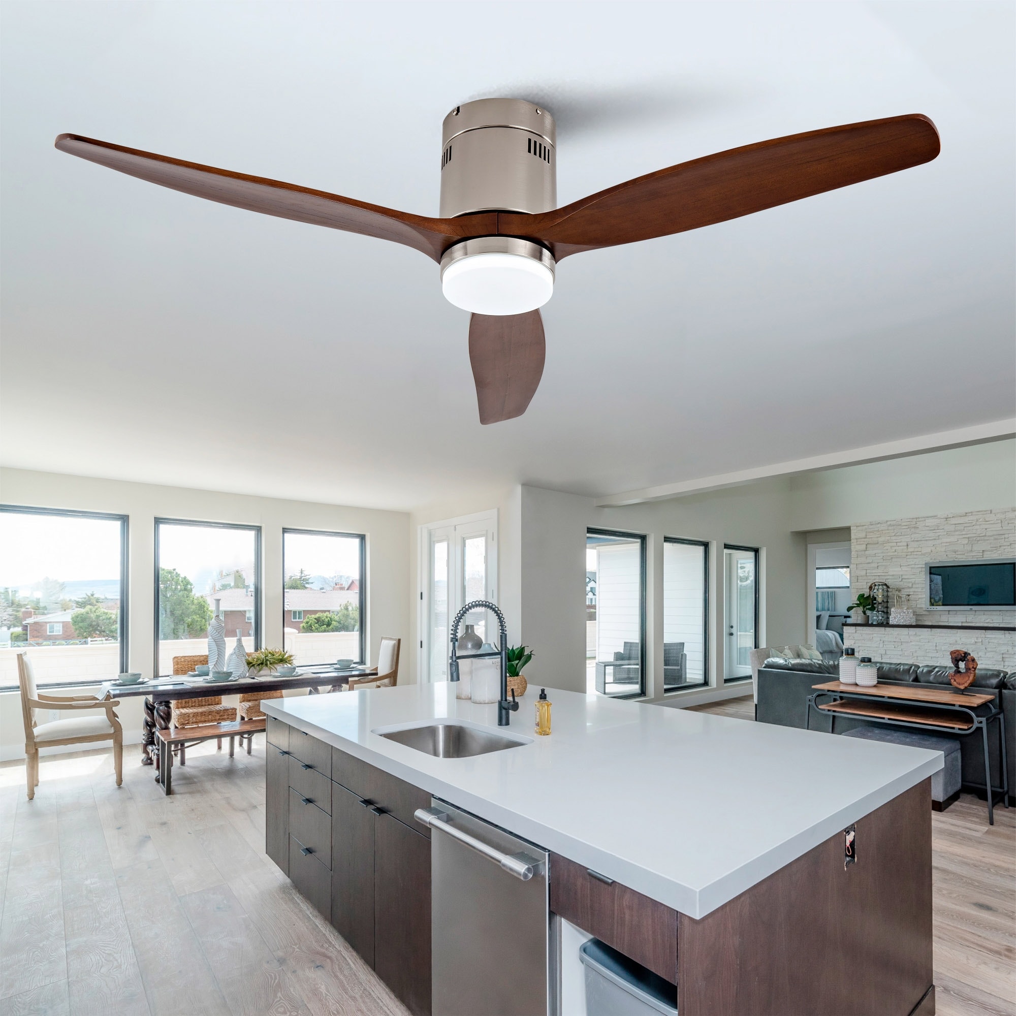 52 inch Smart Ceiling Fan Light with Remote Control with 3 Wood Blades,Flush Mount,Dimmable LED