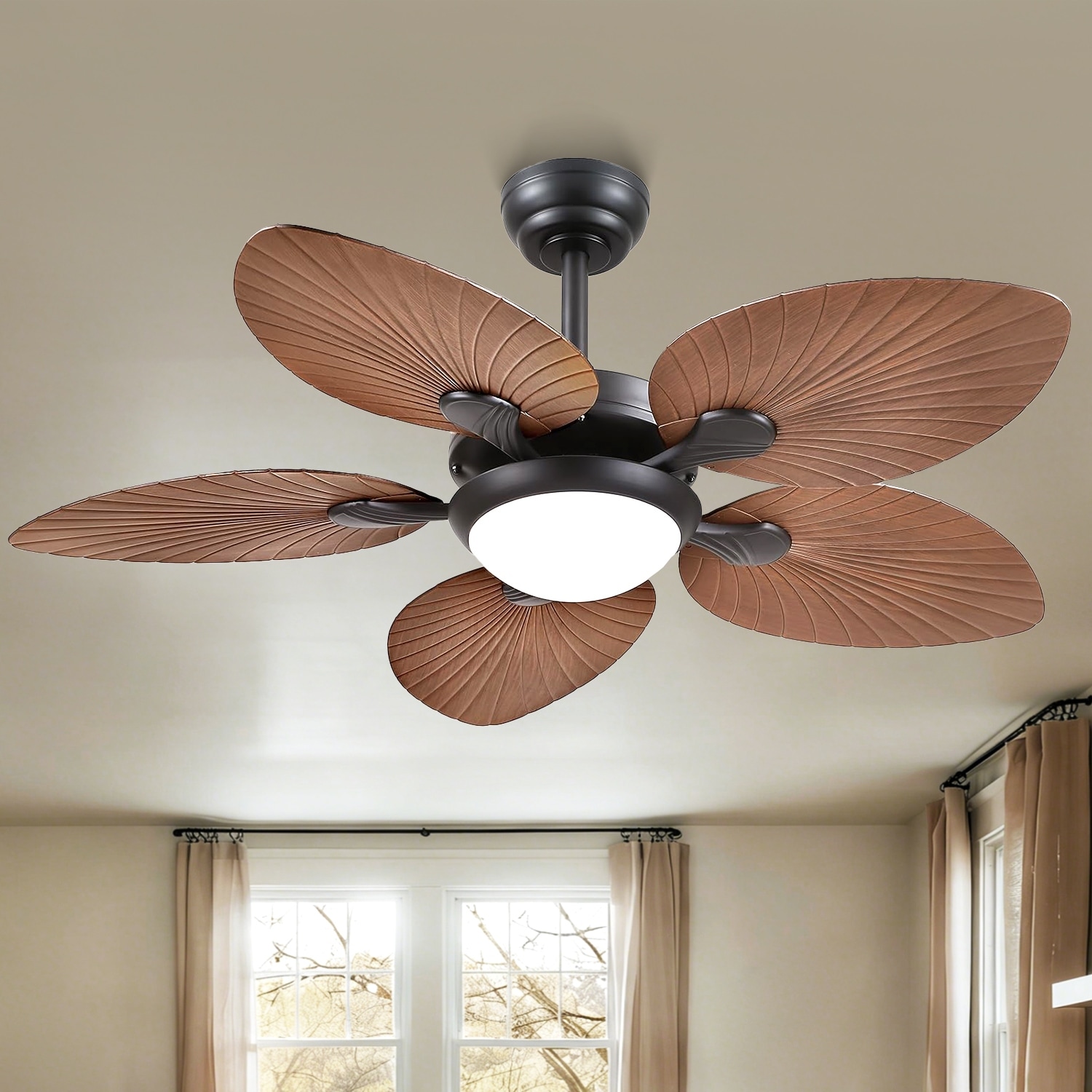 Kviflon 44" Wood GrainTropical Ceiling Fan with Light and Remote,Indoor and Outdoor Ceiling Fan,Waterproof - 44 Inches