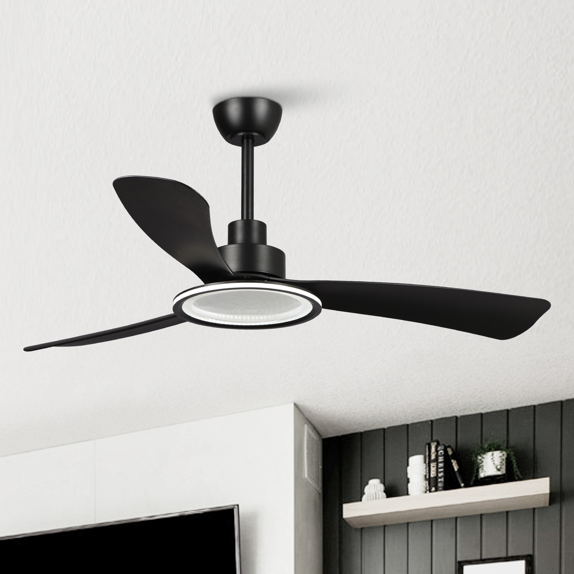 52-inch Matte Black Modern LED Ceiling Fan with Downrod and Remote