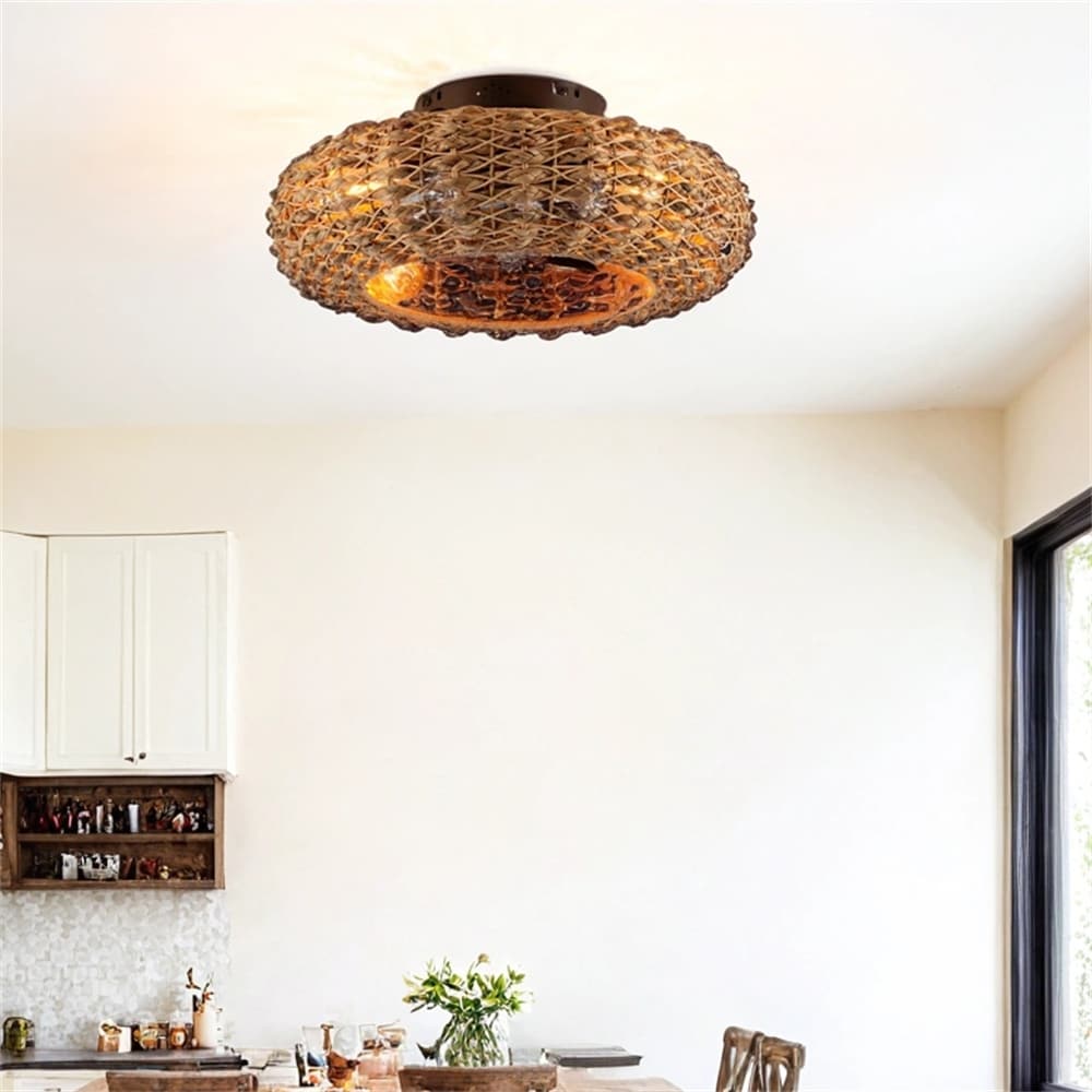 19.6" Bamboo Ceiling Fan With Remote Control,Reversible Ceiling Fan