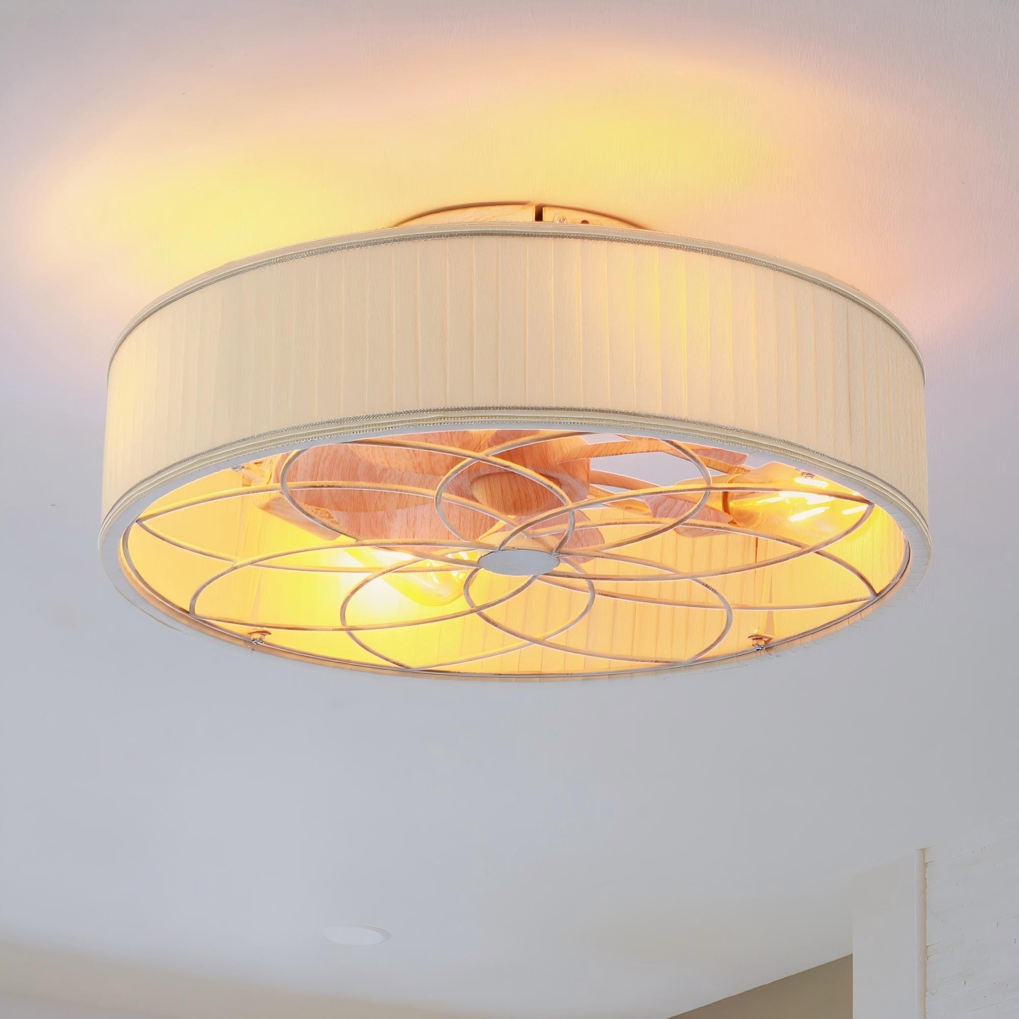 Lunadrift 20"Lotus Pleated Fabric Bladeless Modern Farmhouse Ceiling Fan with Lights, Quiet 6-Speed Rustic Ceiling Fan w/Remote