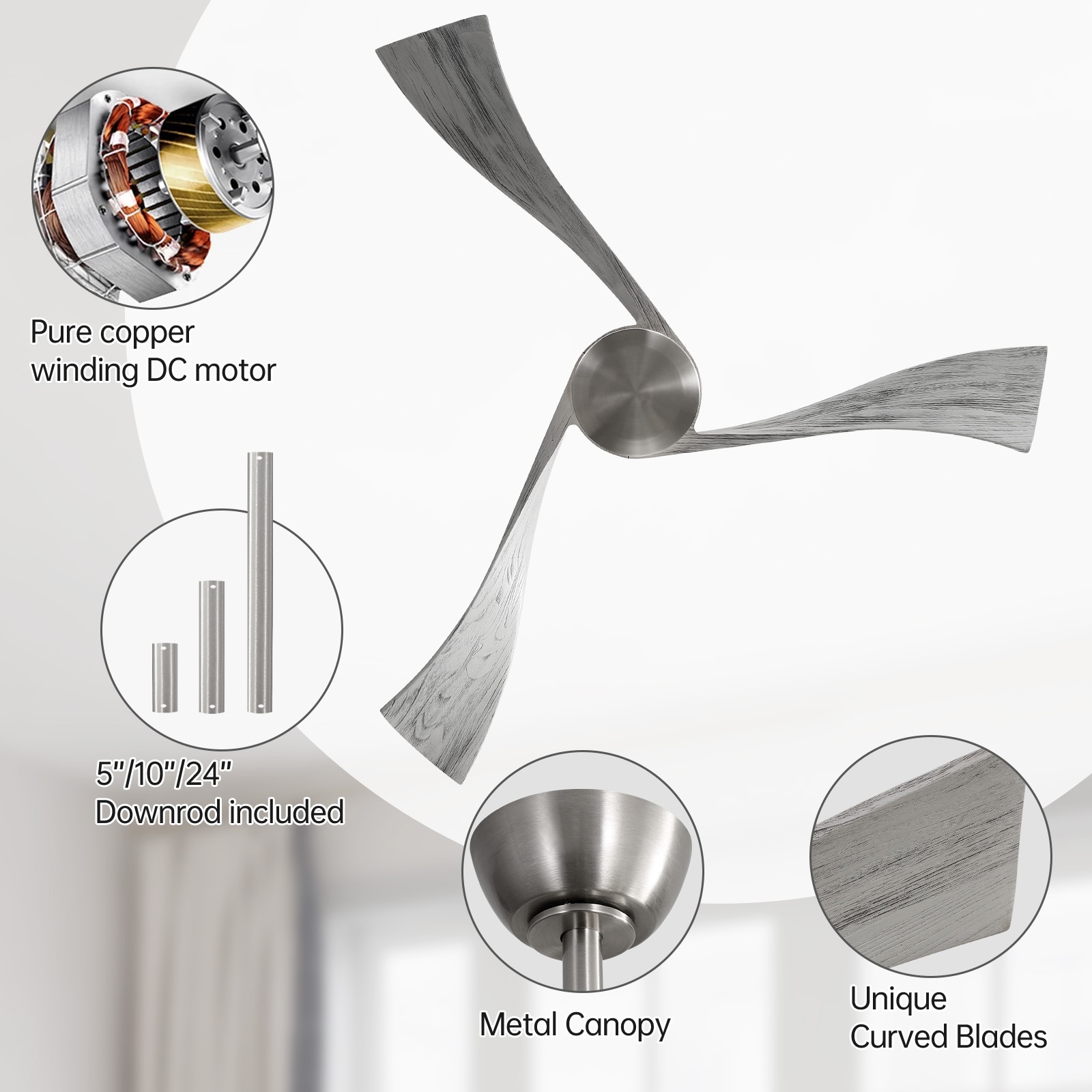 Ceiling Fan with Lights and Remote Control 6 Speed Reversible DC Motor