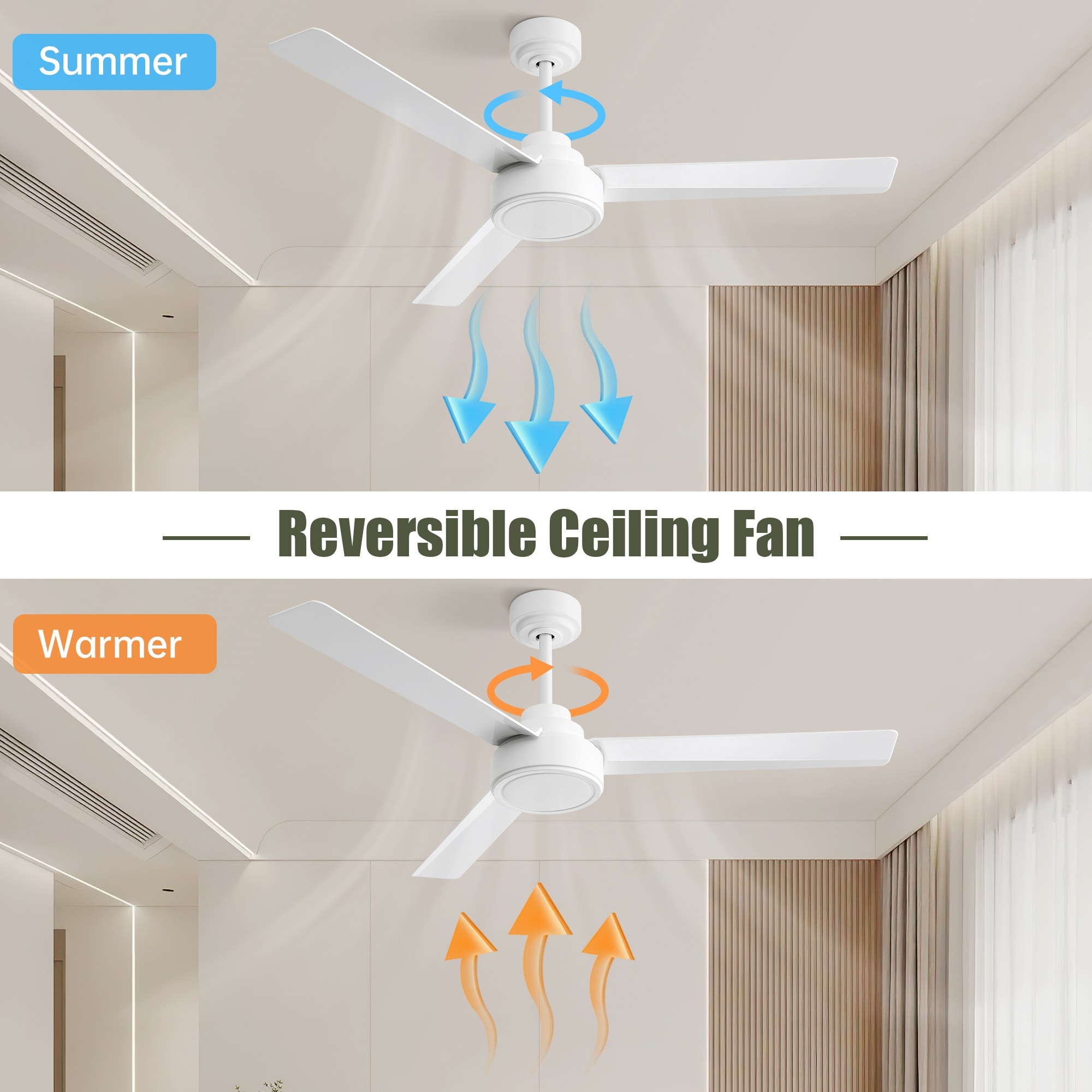 ABS Blades Ceiling Fan with LED Light (3 Color Dimmable) Reversible DC Motor Ceiling Fan with Remote, 52" Modern Ceiling Fan