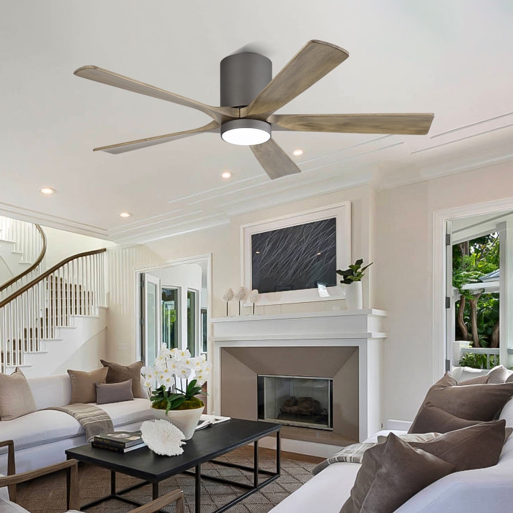 WINGBO 52" Solid Wood DC Motor Integrated LED Hugger Ceiling Fan with Remote