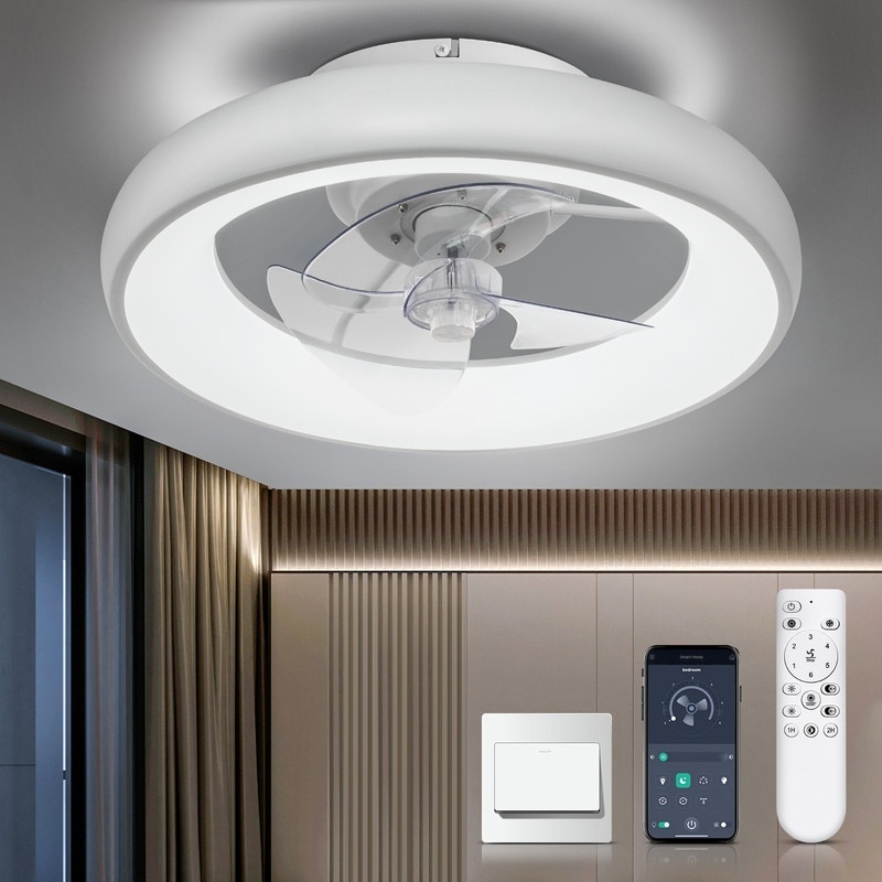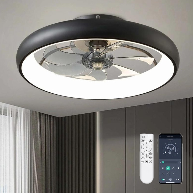 20 in. LED Caged Ceiling Fan with Lights, Dimmable Low Profile Ceiling Fan with App Control for Kids Room, Bedroom