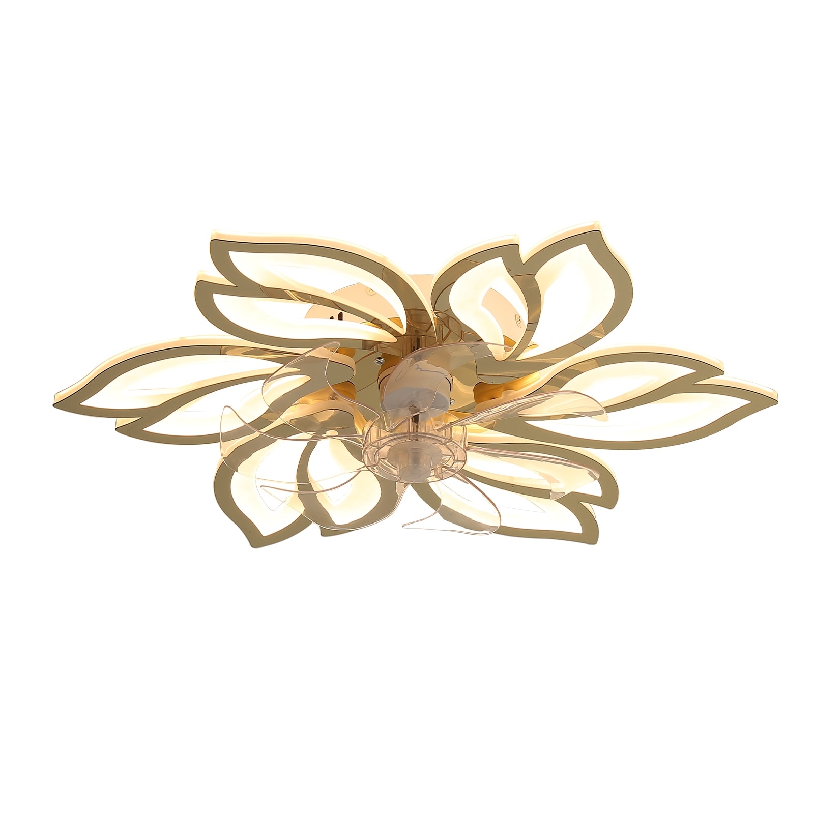25.5 inch Cartoon Petal Ceiling Fans with Lights and Remote, Flush Mount Bladeless Ceiling Fan Lights with Reversible Blades