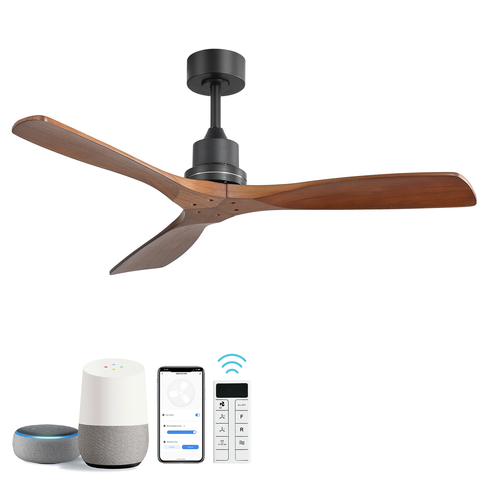 52 Inch Smart Matte Black Ceiling Fan with APP & Alexa Control, 3 Solid Wood Walnut Blades, Reversible Quiet DC Motor, No Light