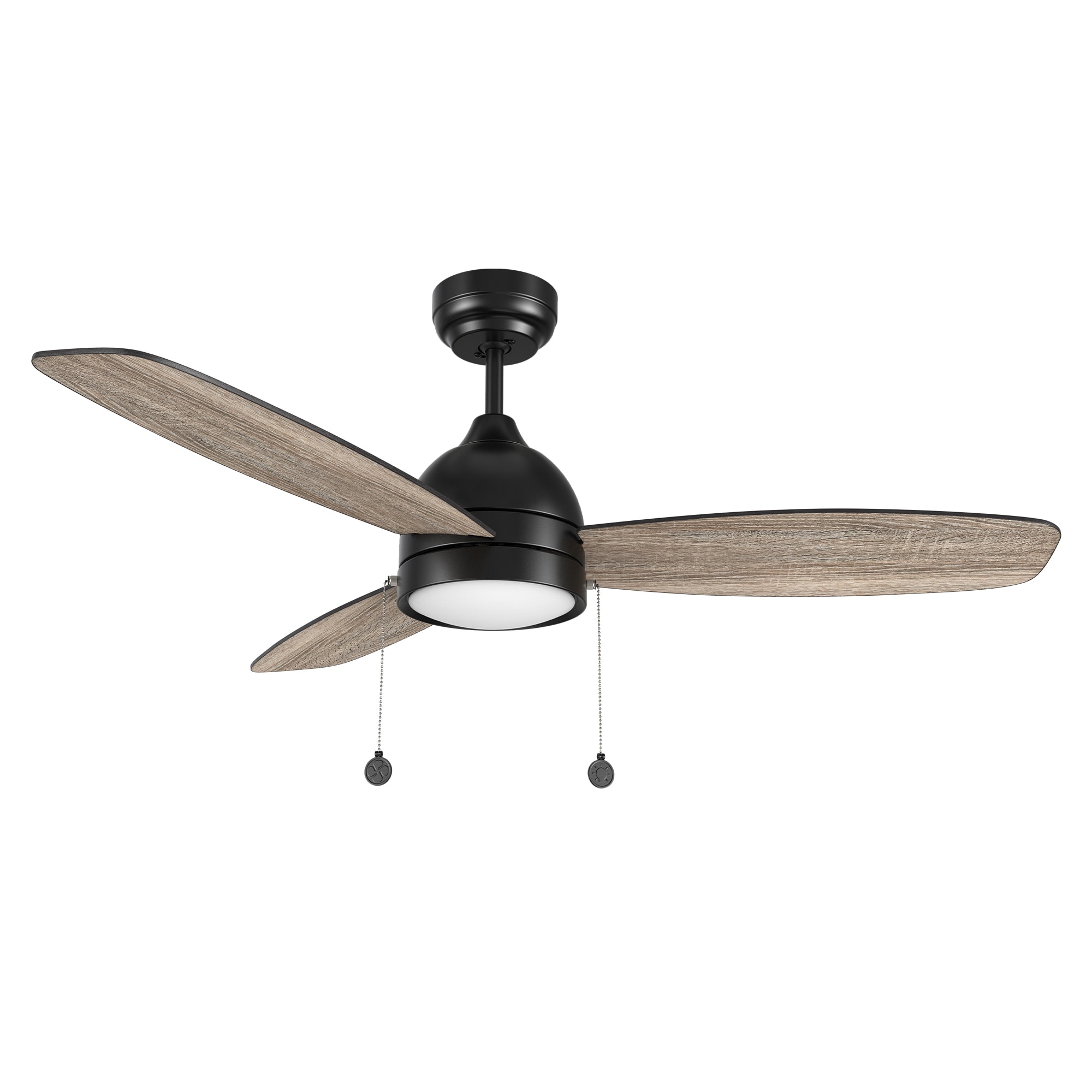 Curtiss 52 in. Indoor Outdoor Propeller Ceiling Fan with Wooden Blades, Dimmable LED Light Kit and Remote Control, 3 Speeds