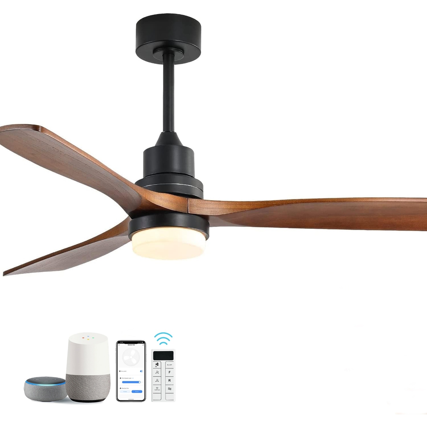 52 Inch Smart Ceiling Fan with LED 18W Triple Color Dimmable Memory Lighting 3 Walnut Finish Blades and DC Motor