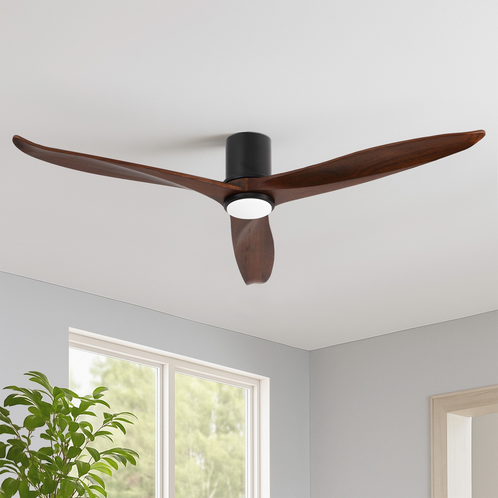 52" / 60" Modern Solid Wood Blade Flush Mount Ceiling Fan with LED Light and Remote