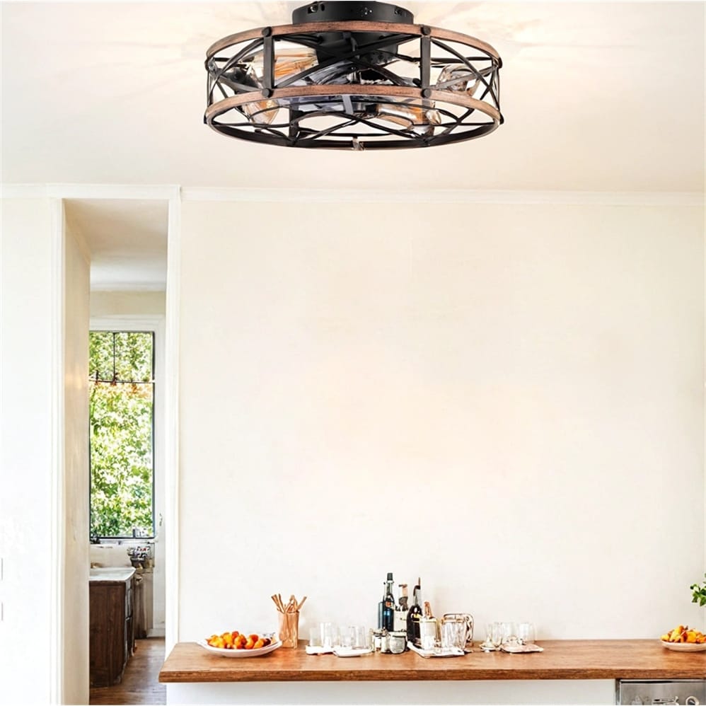 Cusp Barn 20in. Industrial Low Profile Caged Ceiling Fan with Remote Control, Embedded 6 Speeds Reversible Ceiling Fan