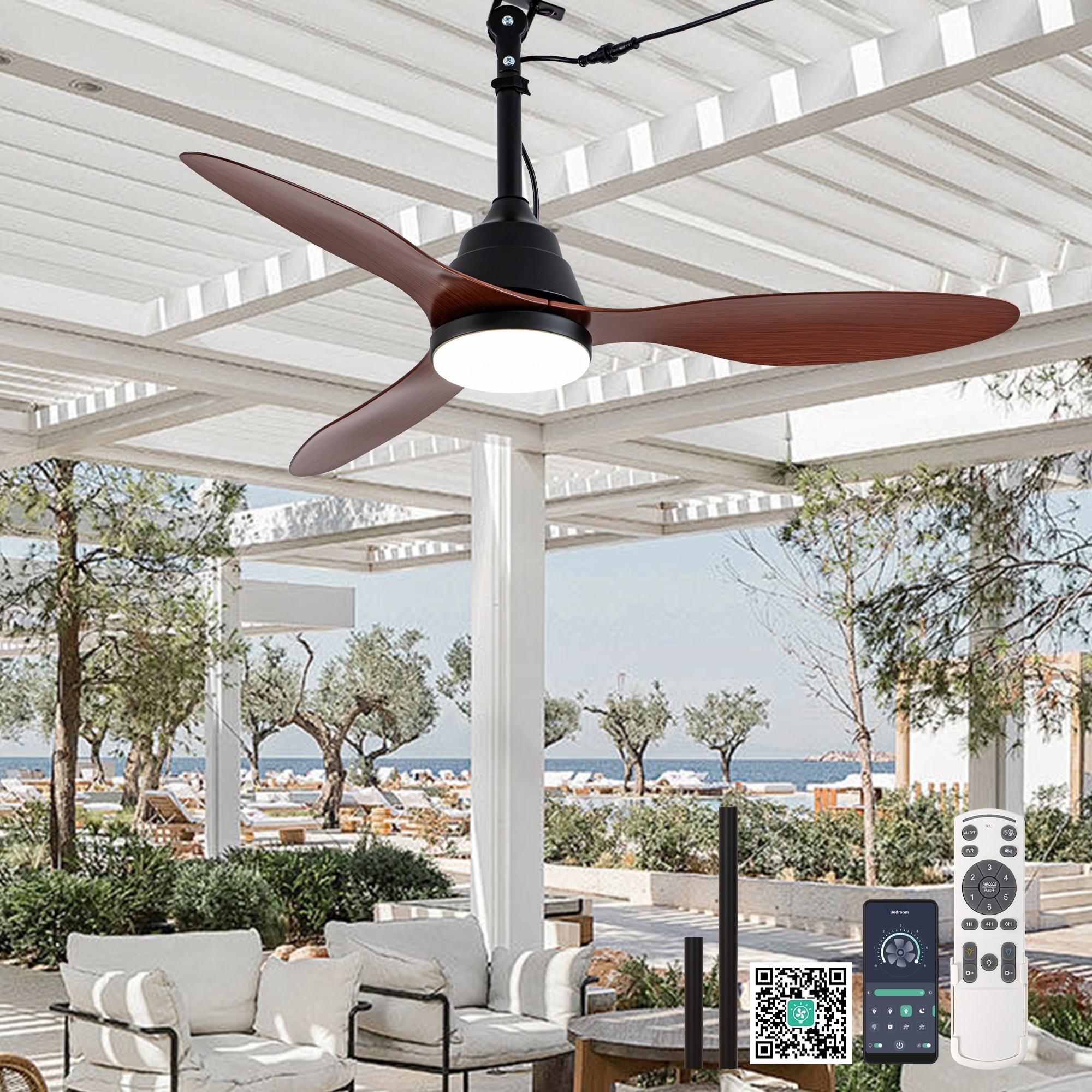 Cusp Barn 42" Outdoor Ceiling Fan with Light and Smart APP Remote Control, 6-Speed DC Motor Plug-in Hanging Fans with Cord