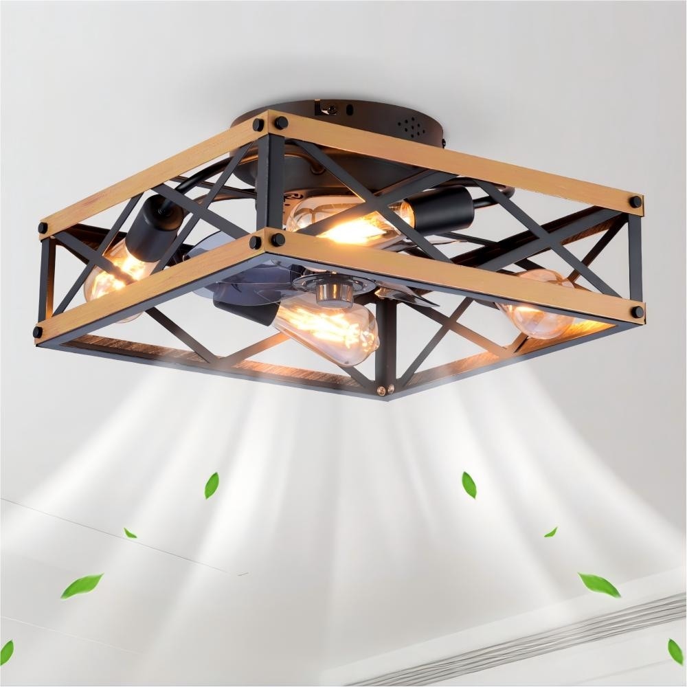 LunaDrift 19" Modern Farmhouse Caged Black Ceiling Fan with Light, Industrial Iron Art 6-Speed Reversible Flush Mount Fandelier