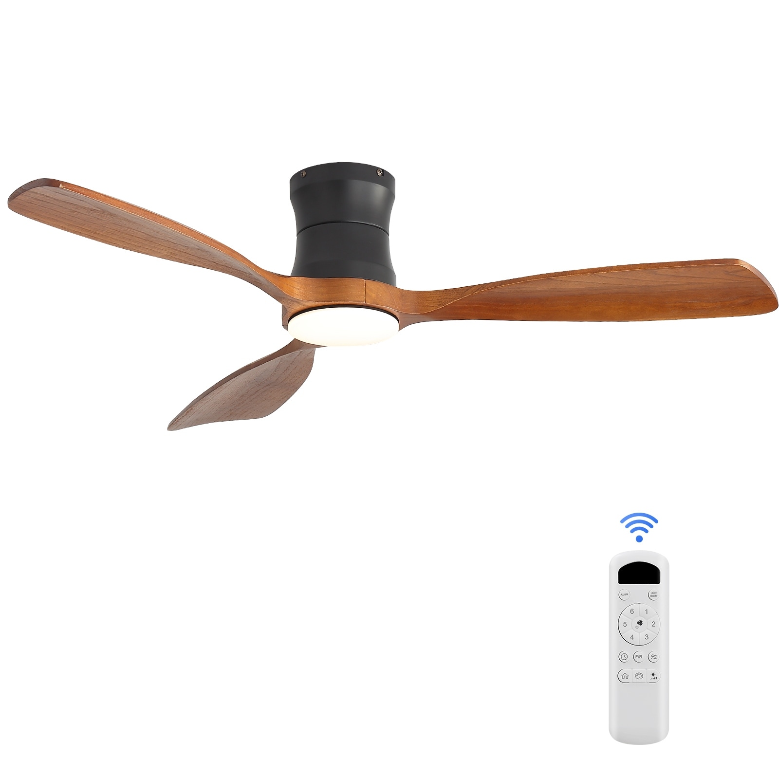 Wood Flush Mount Ceiling Fan with Dimmable LED Light & Remote
