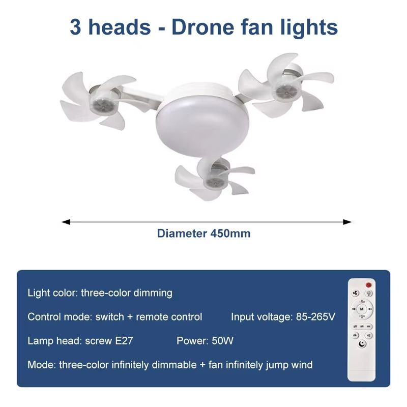 Smart Drone Fan Light Ceiling Lamp With Remote Control 2 In 1 Decorative LED And Quiet Fan white 3 Head Fan