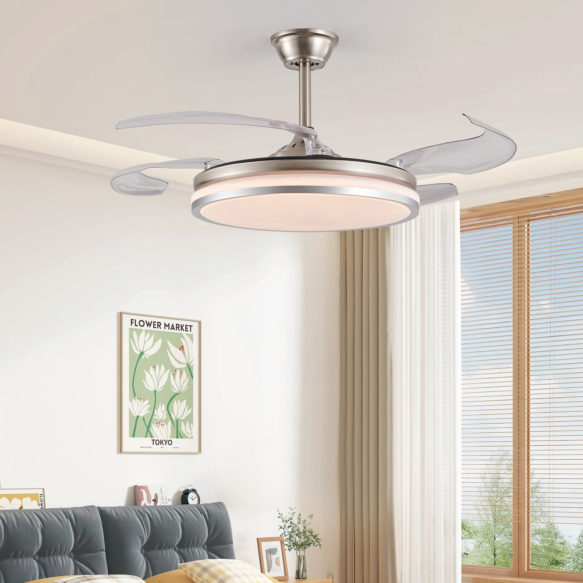 Chrome Bedroom Ceiling Fan with Light and Remote Control