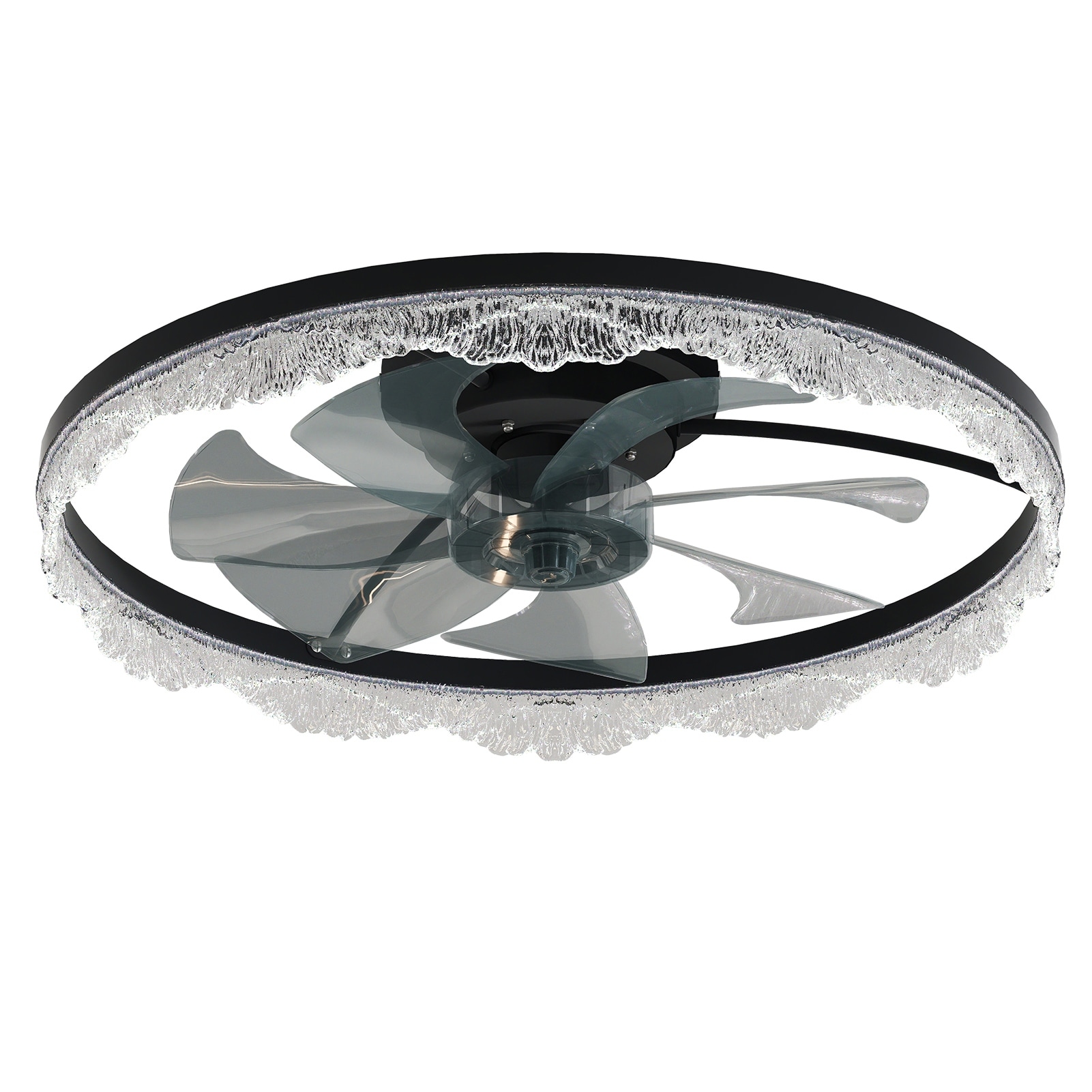 Modern Flush Mount Ceiling Fan with Dimmable Light & Remote Control
