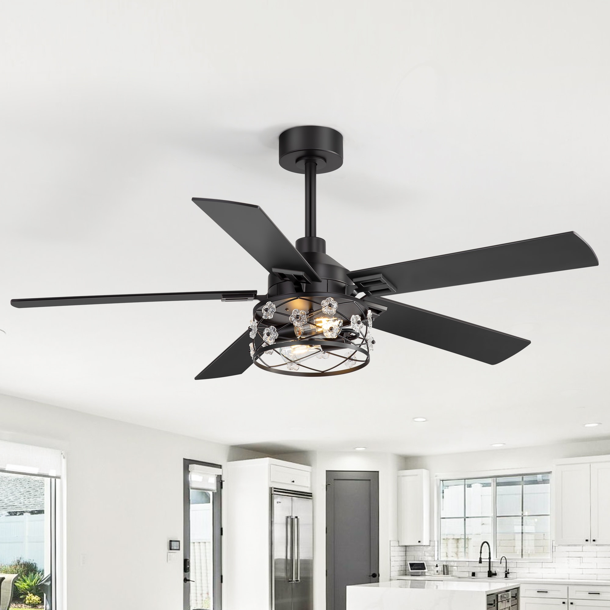 52-in Industrial Metal Caged Ceiling Fan with Light and Remote, Reversible 5-Blade