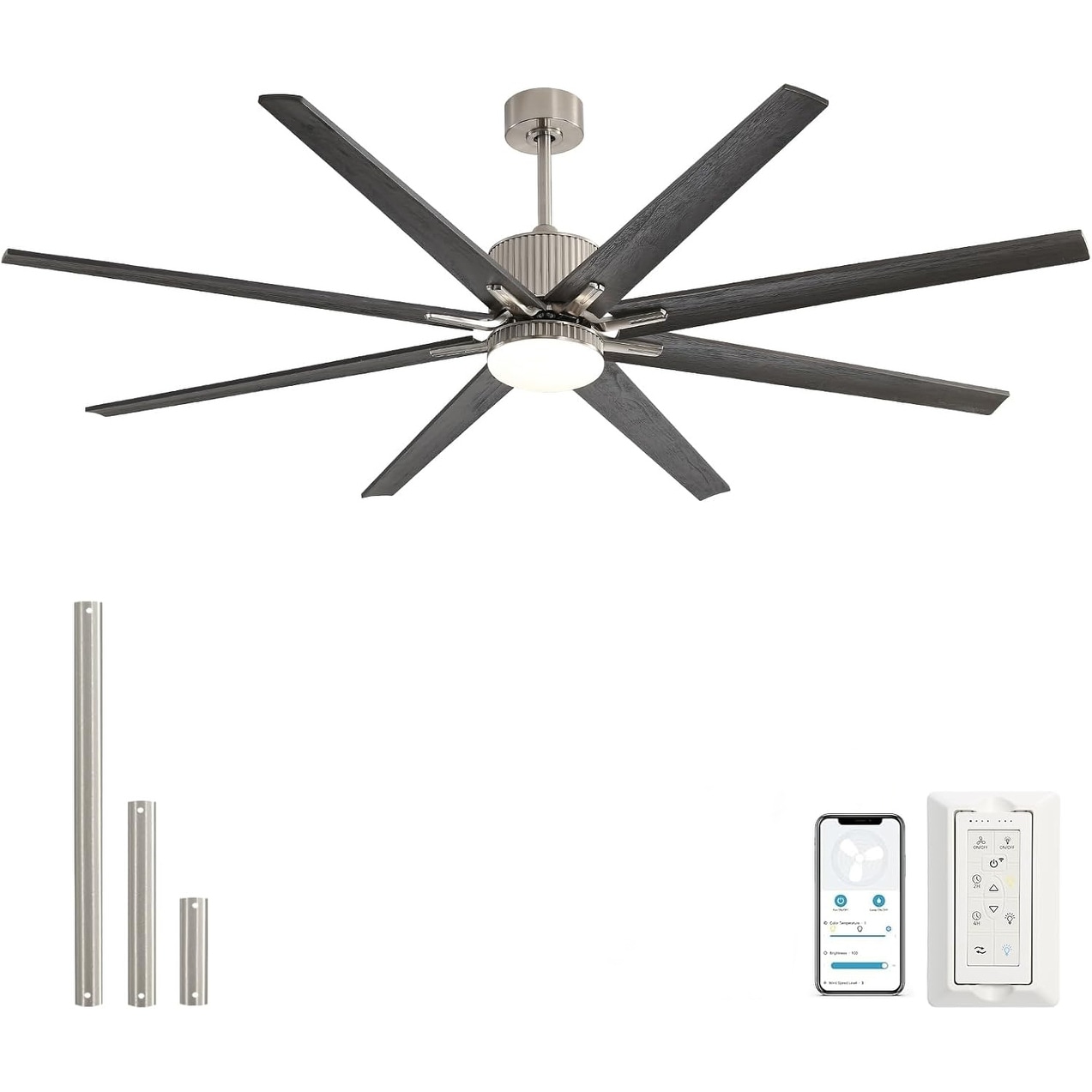 Vaczon 60" Modern Brushed Nickel Integrated LED Smart Ceiling Fan with Light and Remote, App Control