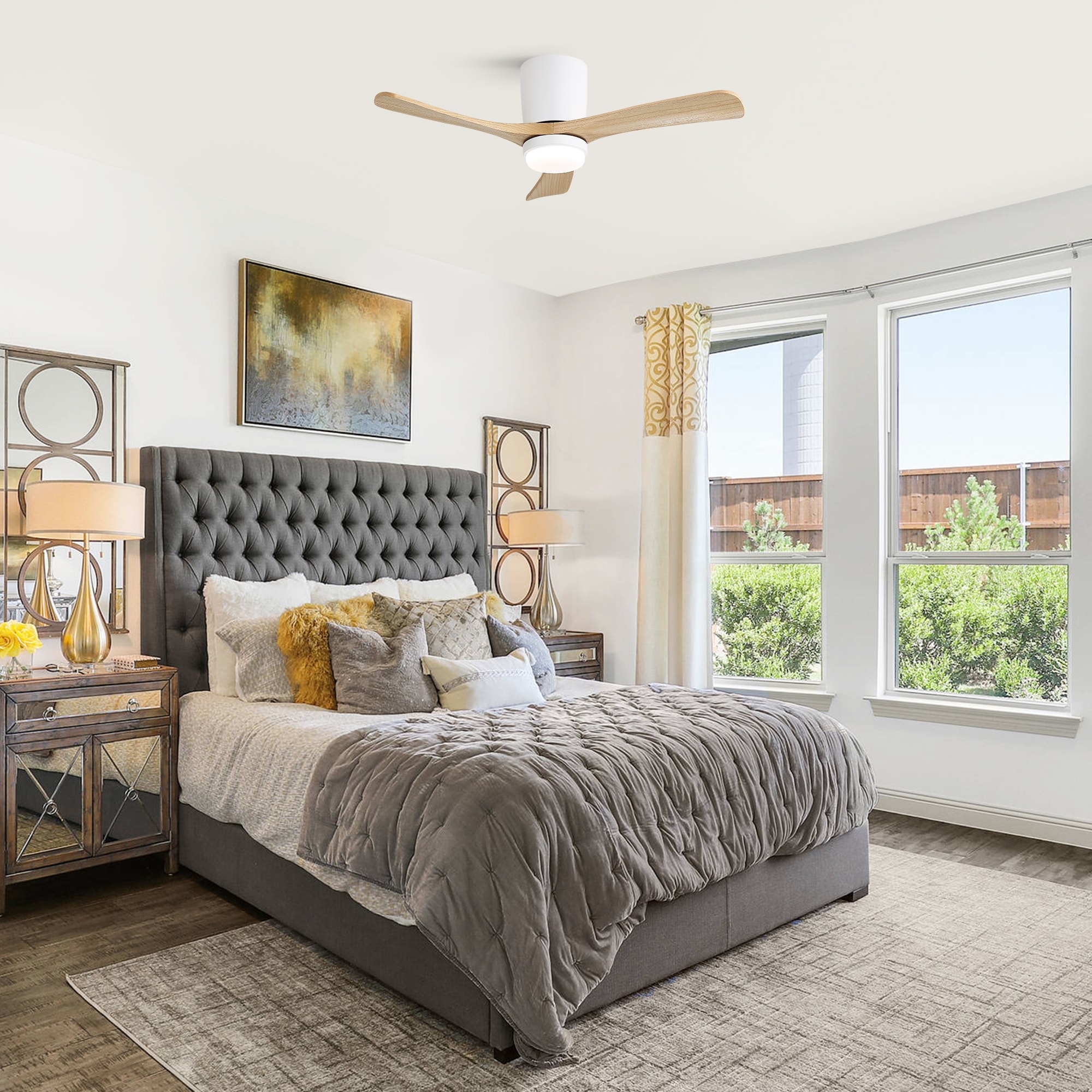 Sofucor 52 Inch Solid Wood Flush Mount Indoor Ceiling Fan without Light,Remote Control,Retractable Blades,Smart Optional