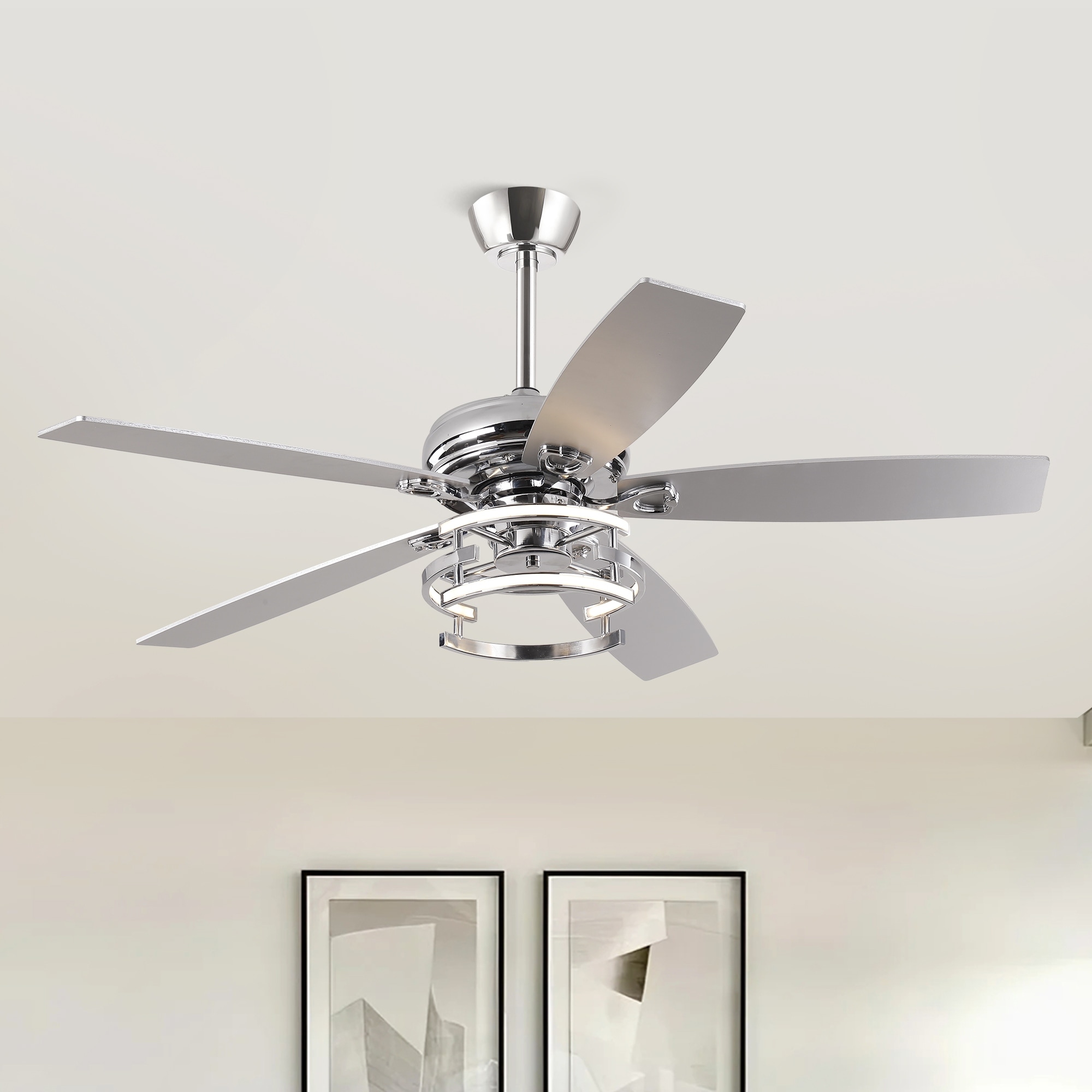 52 in. Chrome Integrated LED Dimmable Ceiling Fan with Light and Remote - 52 in. W x 52 in. D x 13 in. H