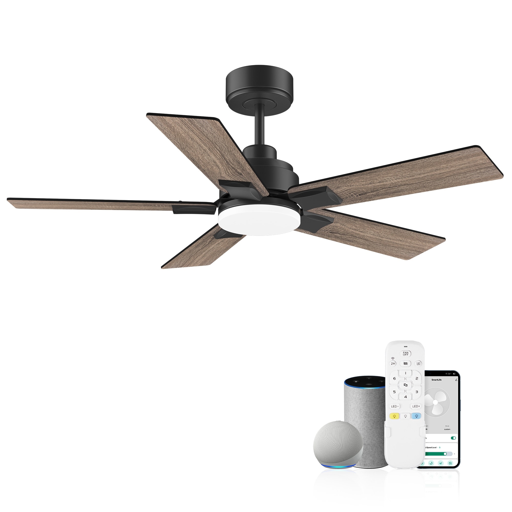 Black Walnut 42" Smart Ceiling Fan with Dimmable LED Lights and Remote