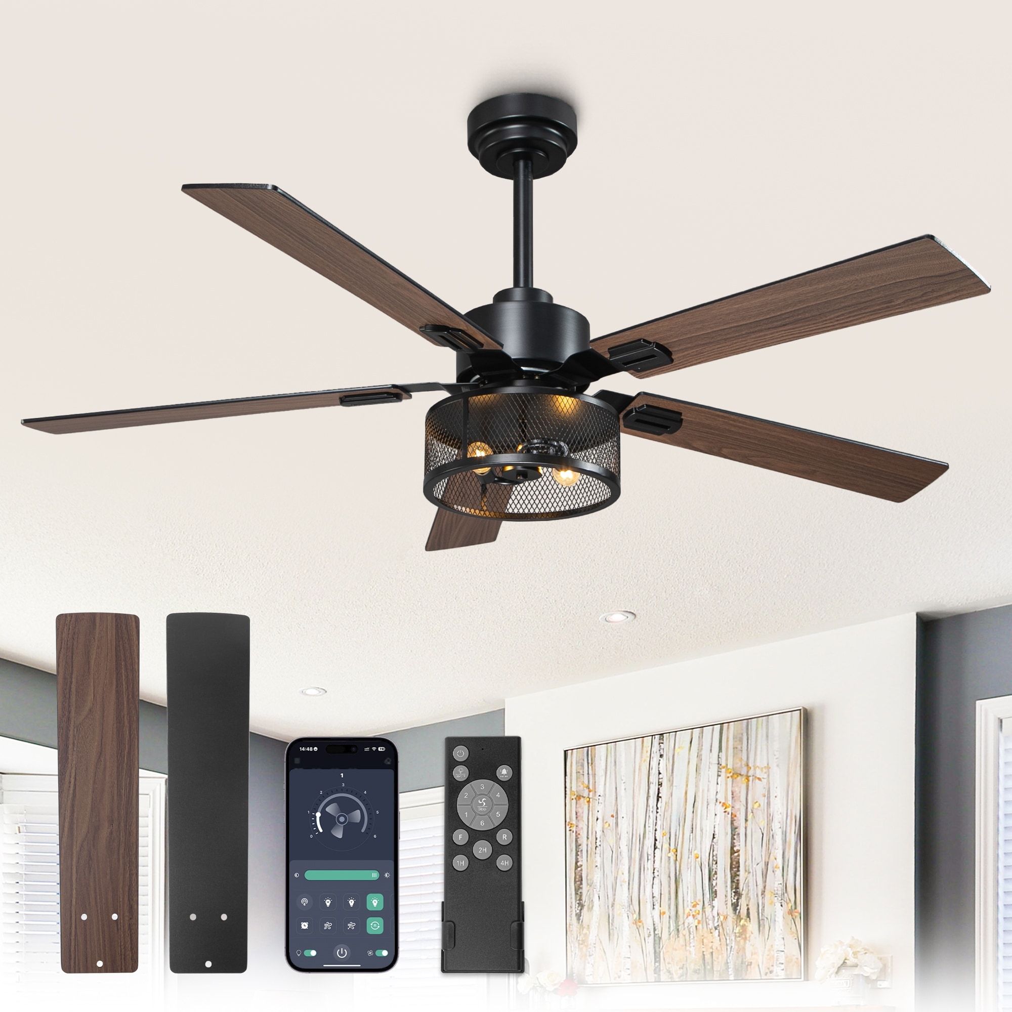 Vaczon 60" Black Reversible Wood 5-Blade Smart Ceiling Fan with Light and Remote, App Control