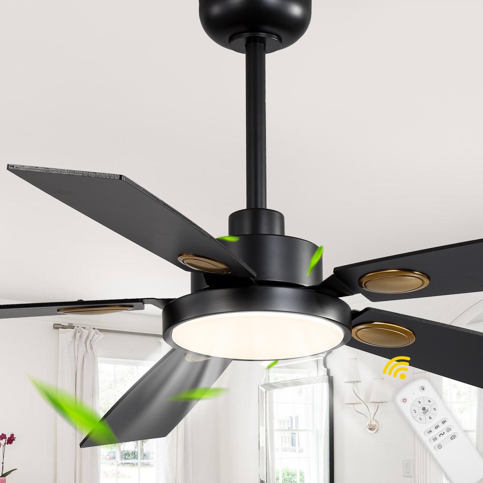 Chichoice 52" Modern Black Ceiling Fan with LED Light Kit and Remote, 6-Speed Quiet DC Motor, Reversible for Living Rooms