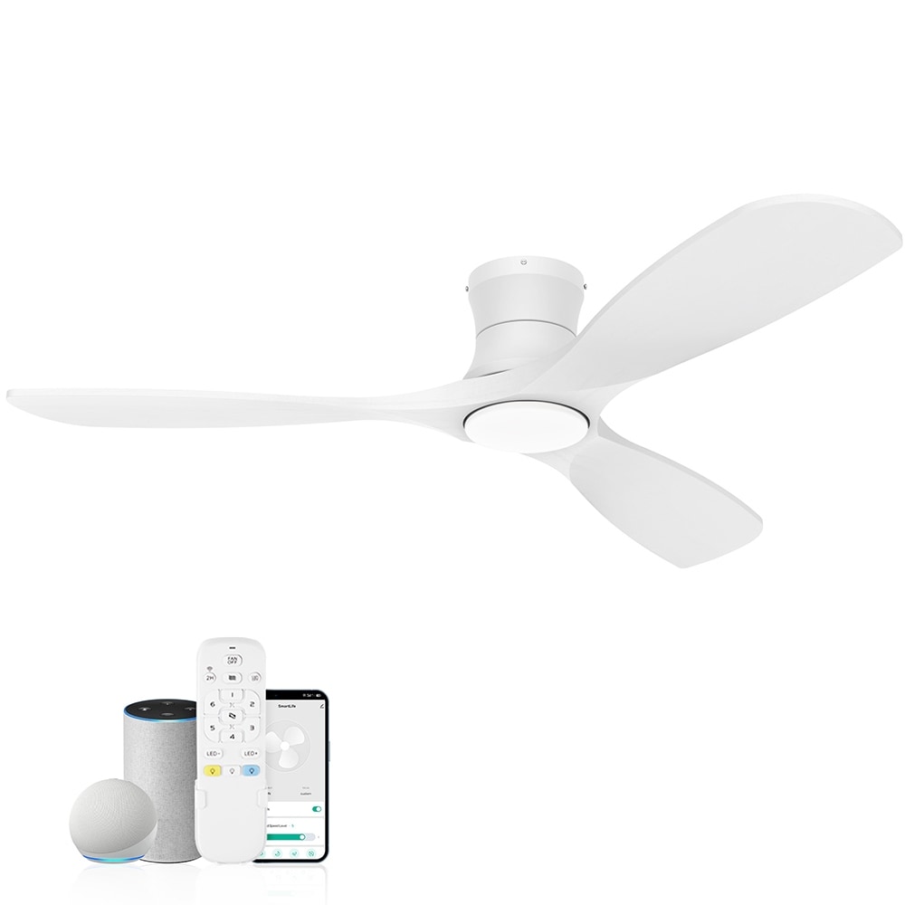 52" Smart White Flush Mount Ceiling Fan with Dimmable LED Lights