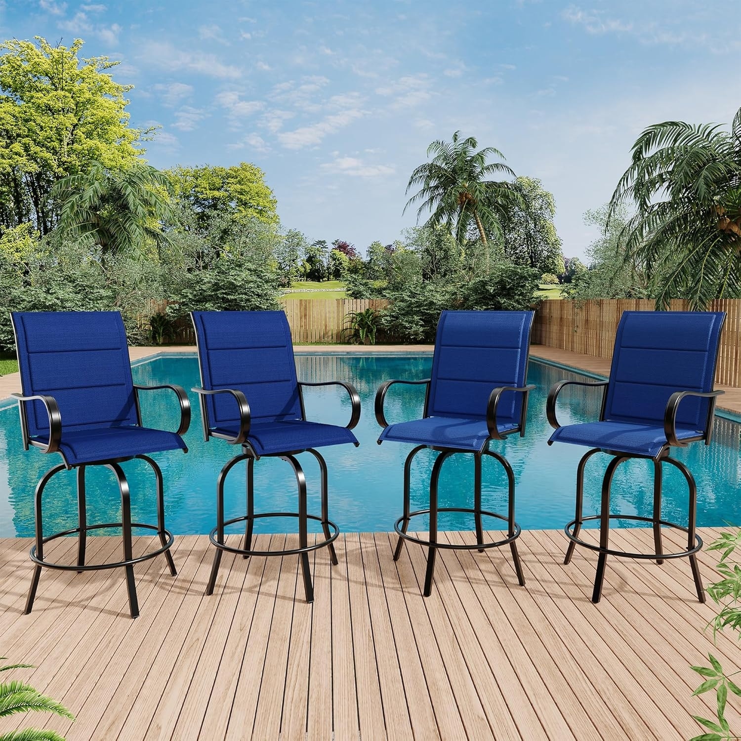 Outdoor Swivel Bar Stools set of 4, All-Weather High Back Armrest Patio Chairs - 25"D x 28"W x 49"H