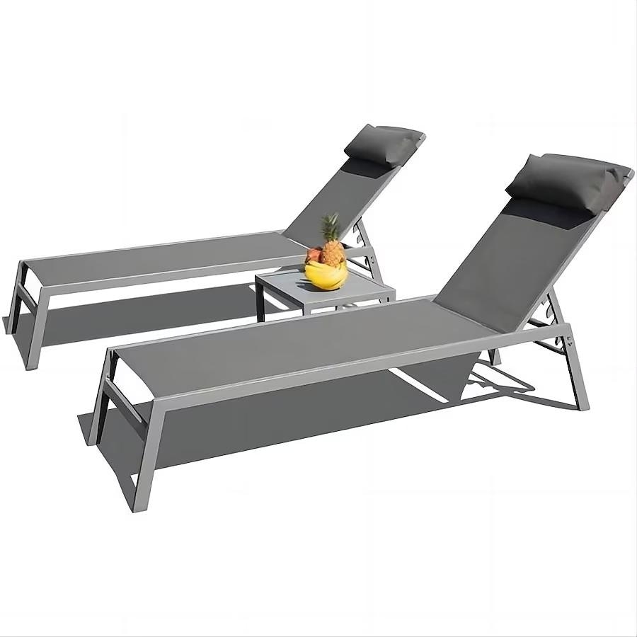 Patio Chaise Lounge Set, 3 Pieces Aluminum Adjustable Pool Lounge Chairs